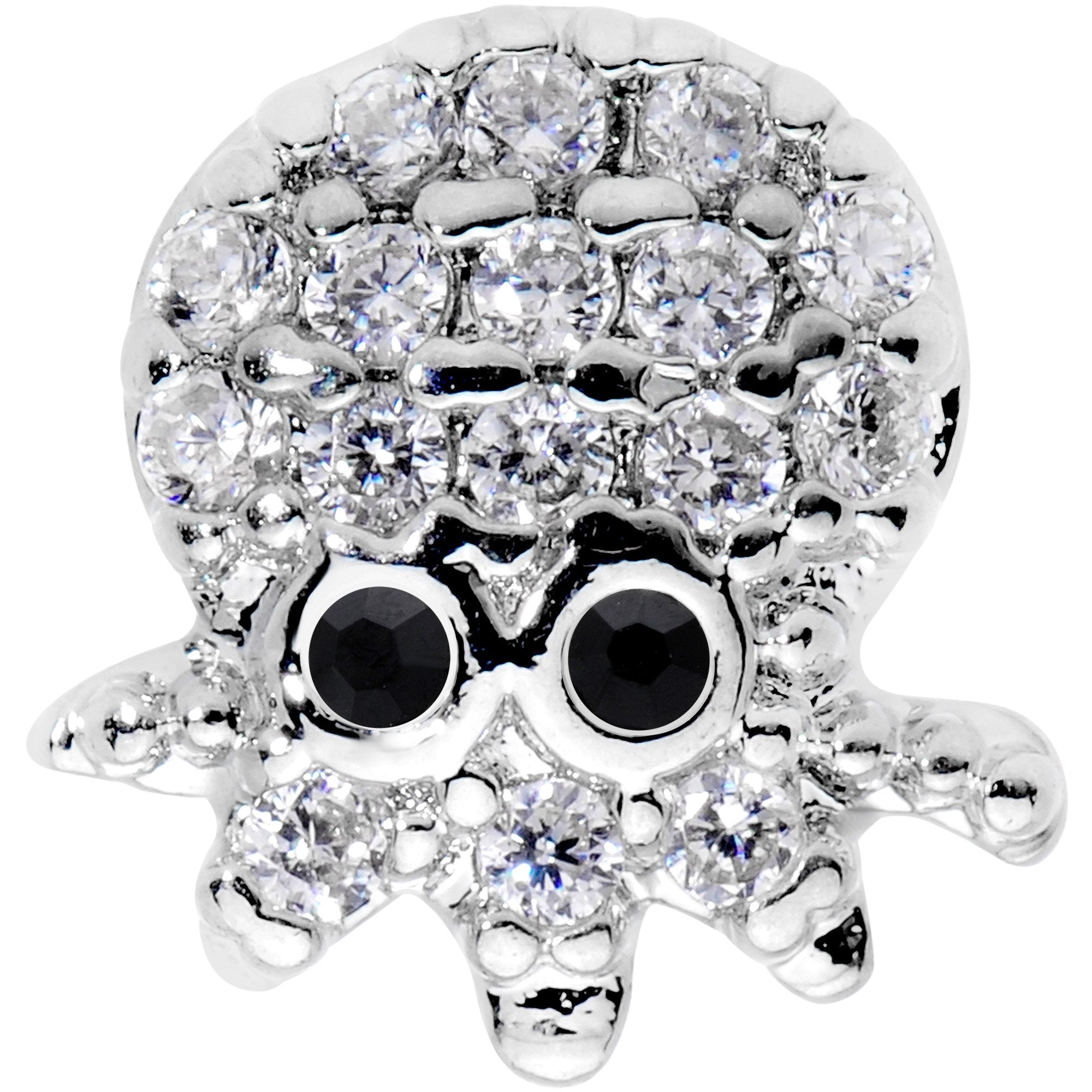 16G 1/4 Clear Black CZ Gem Nautical Octopus Cartilage Tragus