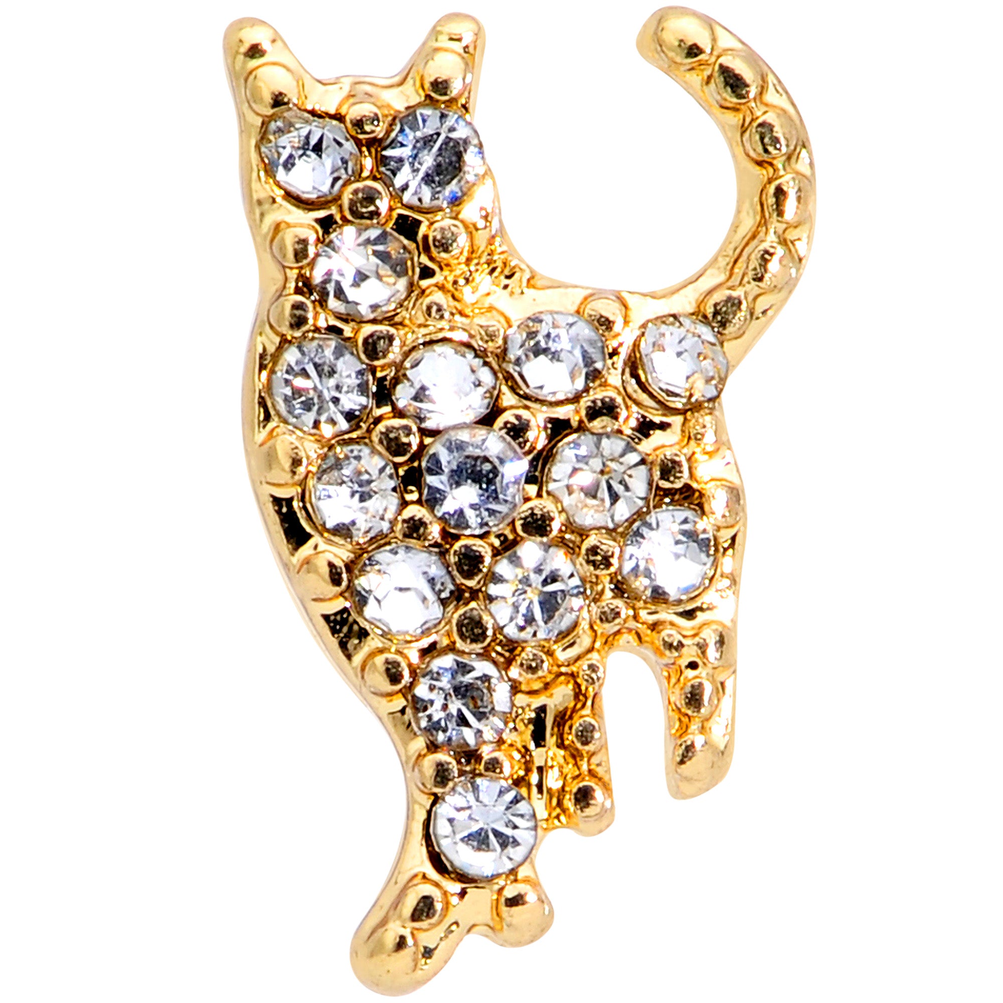 16 Gauge 1/4 Clear Gem Gold Tone Glamourpuss Cat Cartilage Earring