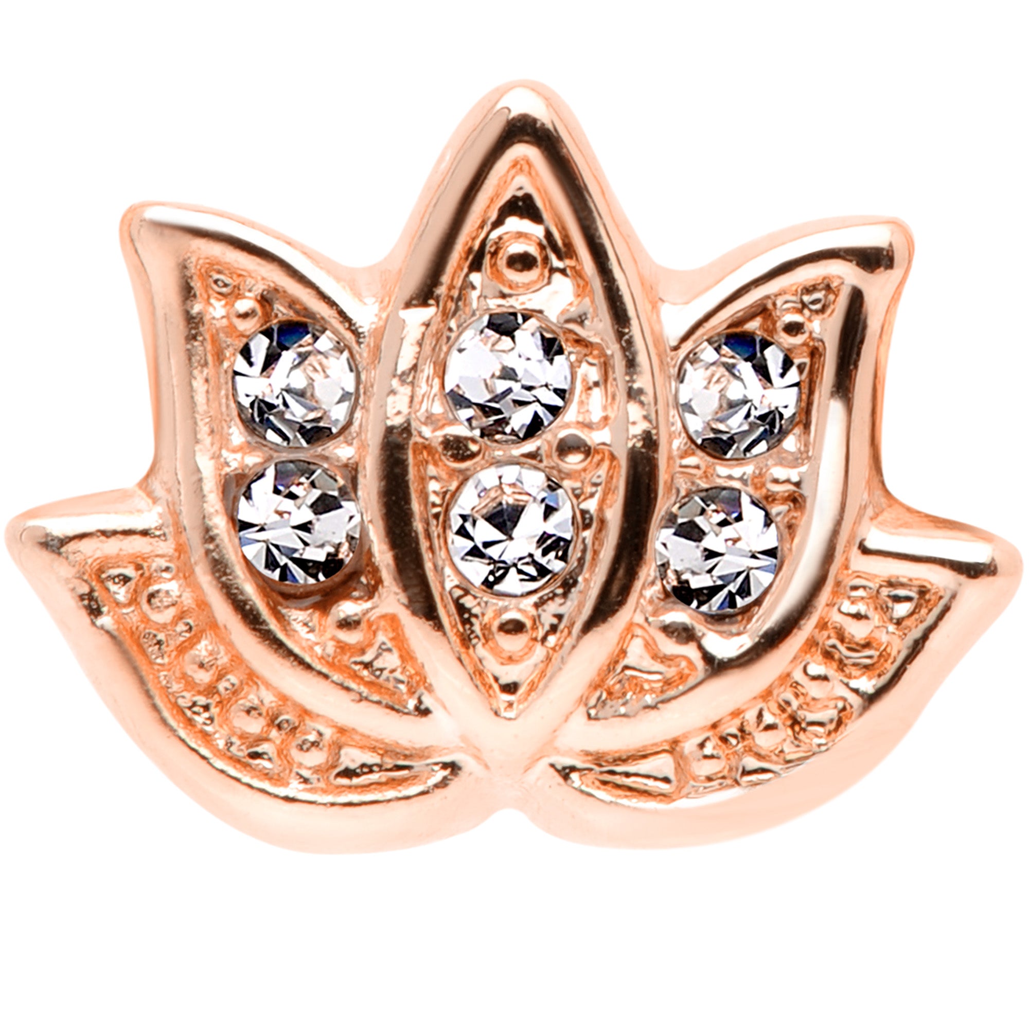 16G 1/4 Clear Gem Rose Gold Tone Lotus Flower Cartilage Tragus Earring