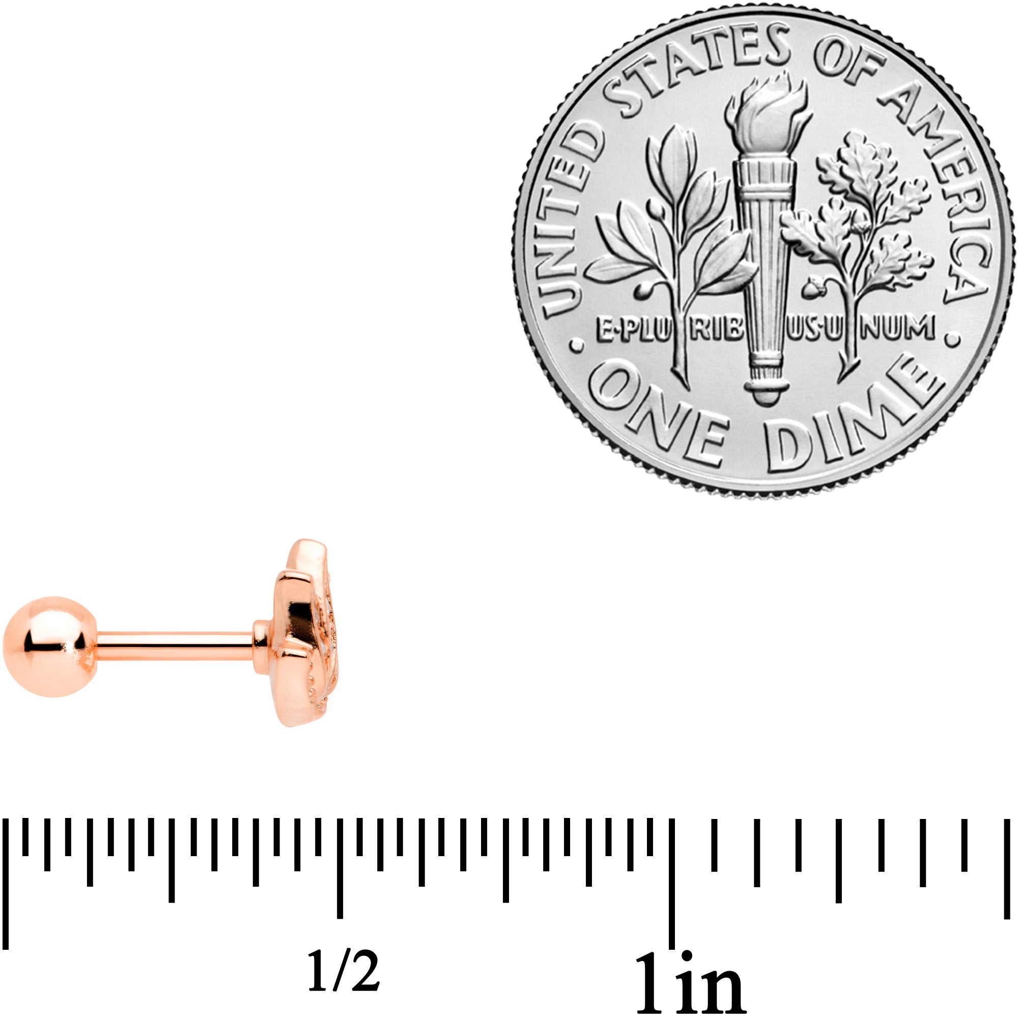 16 Gauge 1/4 Clear Gem Rose Gold Tone Lotus Cartilage Tragus Earring