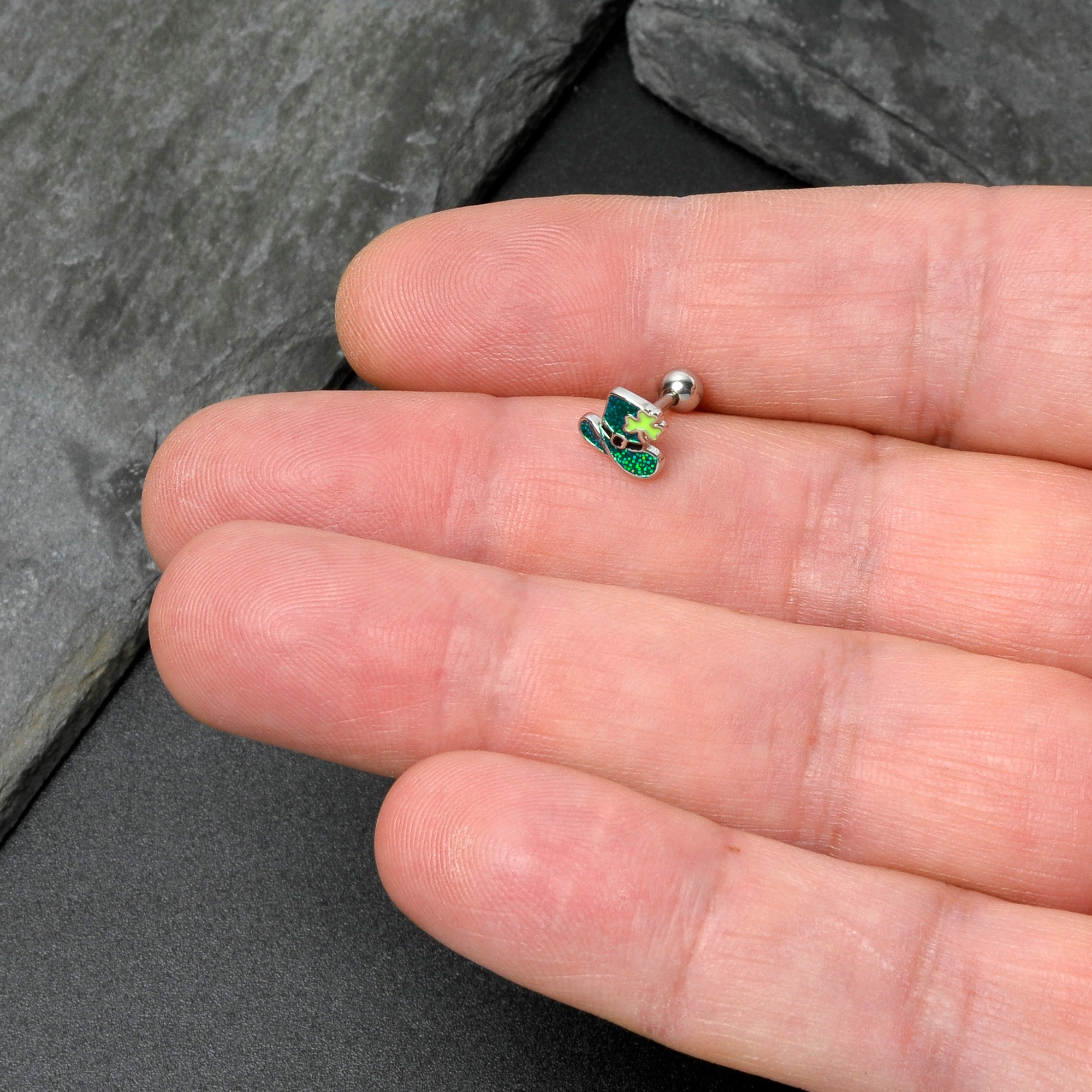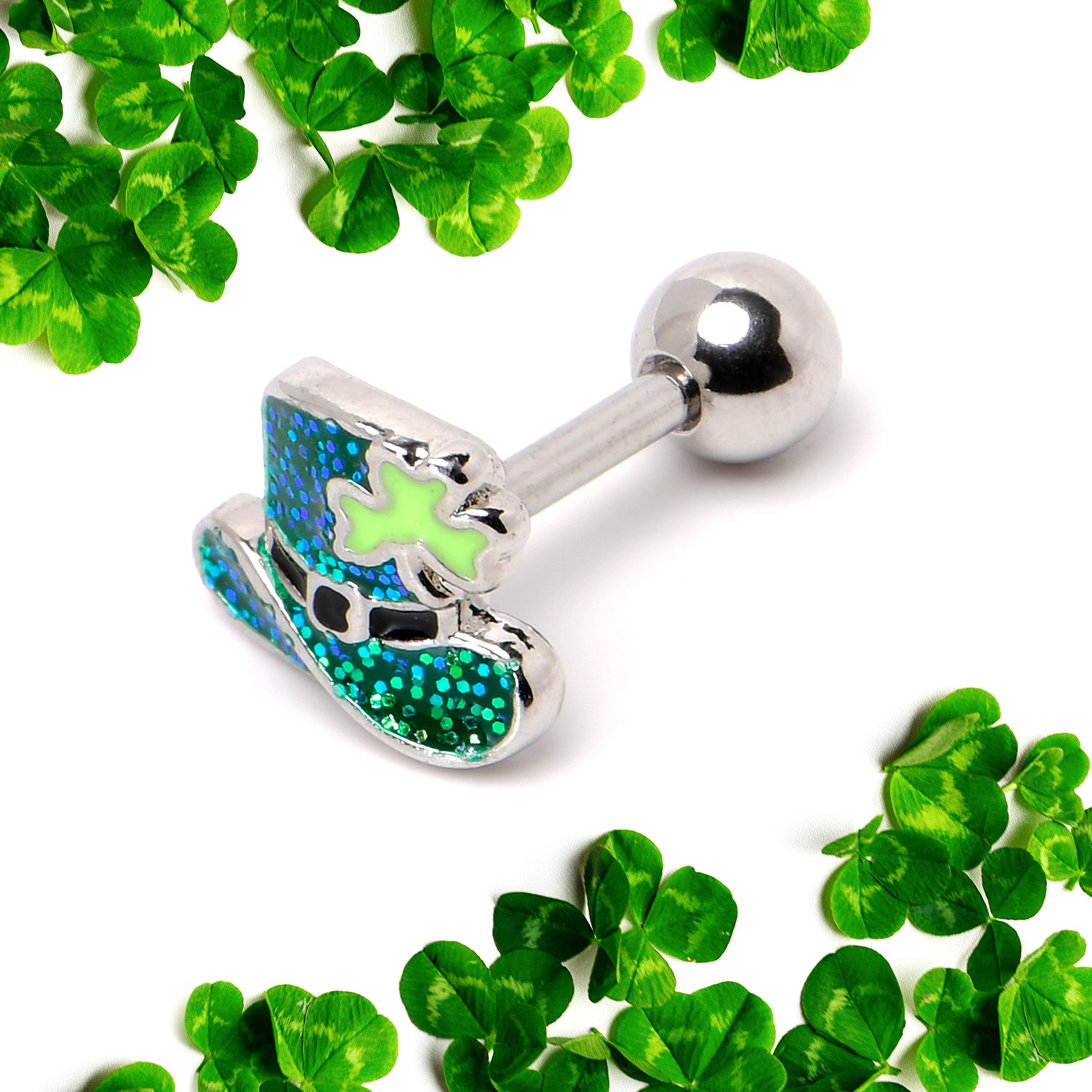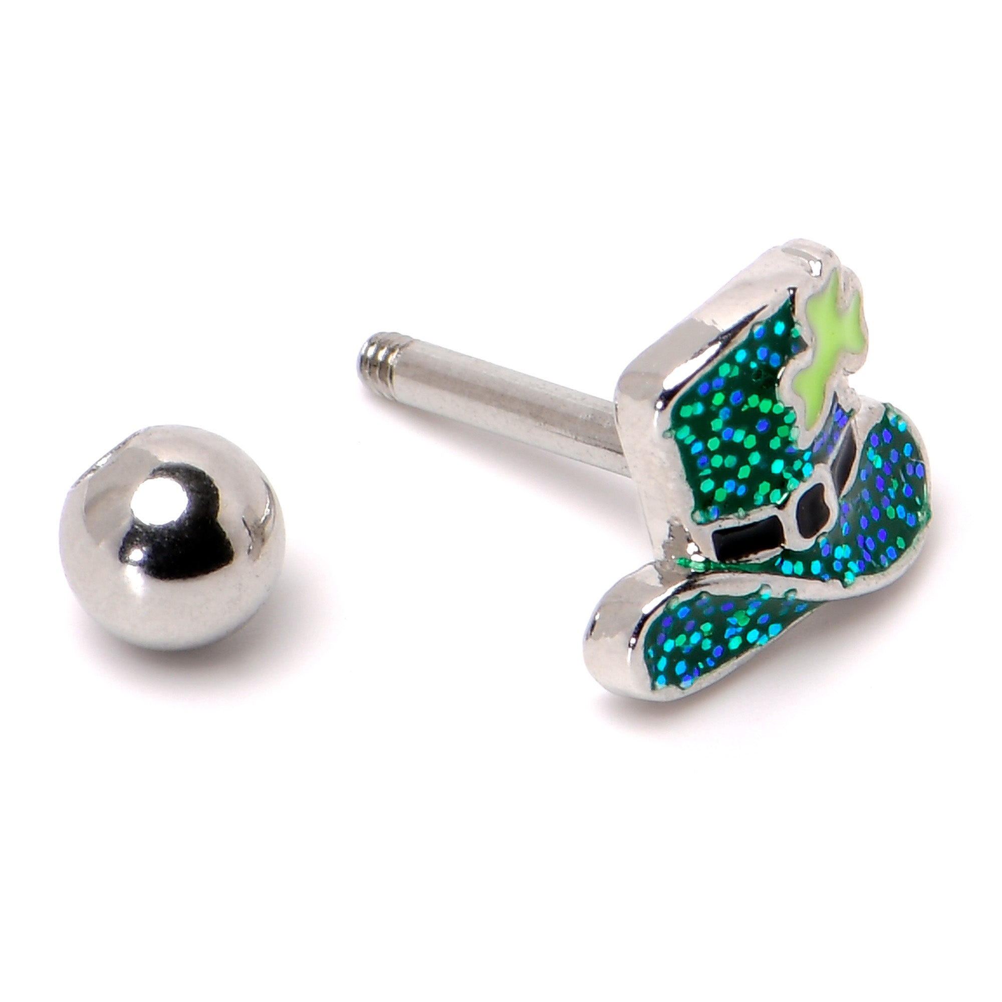 16G 1/4 Glitter Top Hat Shamrock Cartilage Tragus Earring