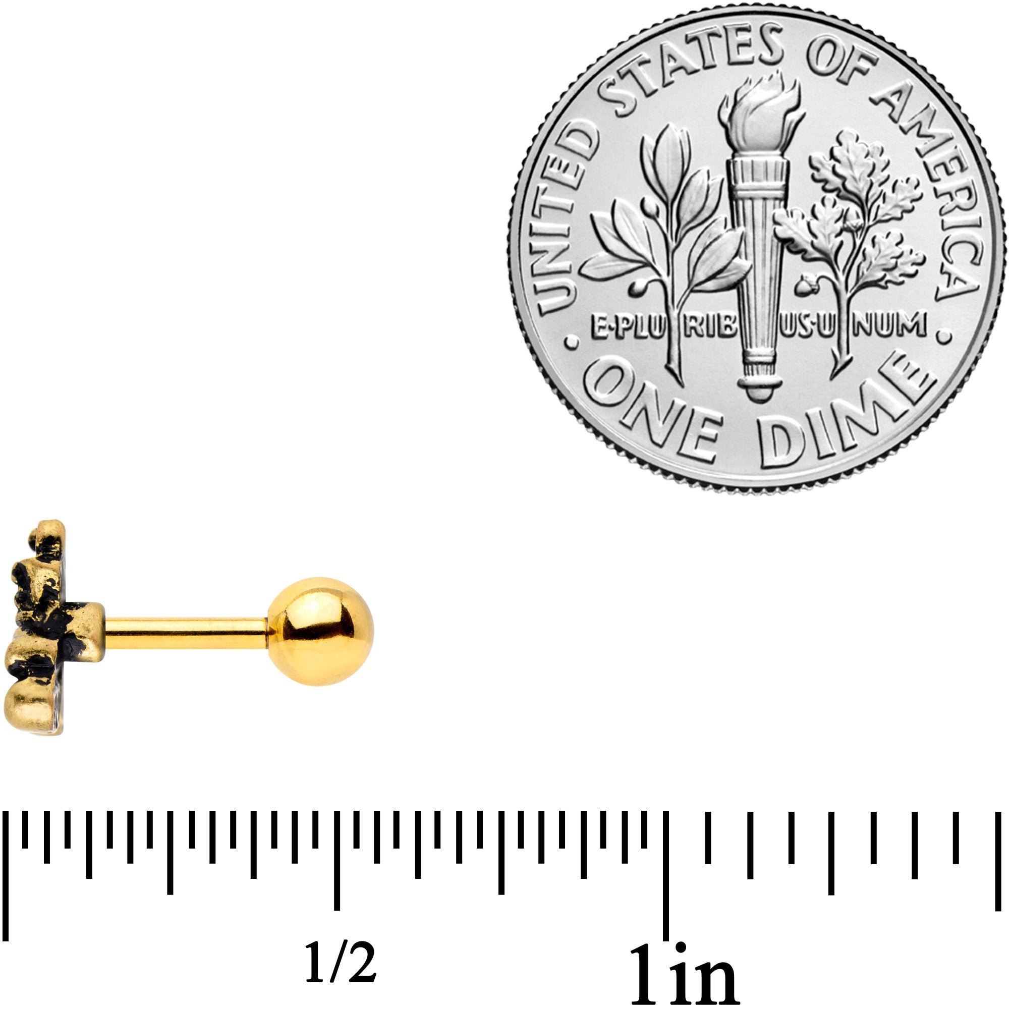 Boom! Boom! This cartilage jewelry is a total knockout! The 16 gauge tragus earring is made with a 6mm gold tone PVD over 316L surgical grade stainless steel straight barbell with a 4mm ball end. It features a sporty pair of boxing gloves charm. What's even more striking is that this piece works well in multiple piercings including cartilage piercings like the tragus, conch, and helix. This tragus stud is sure to have you seeing stars!