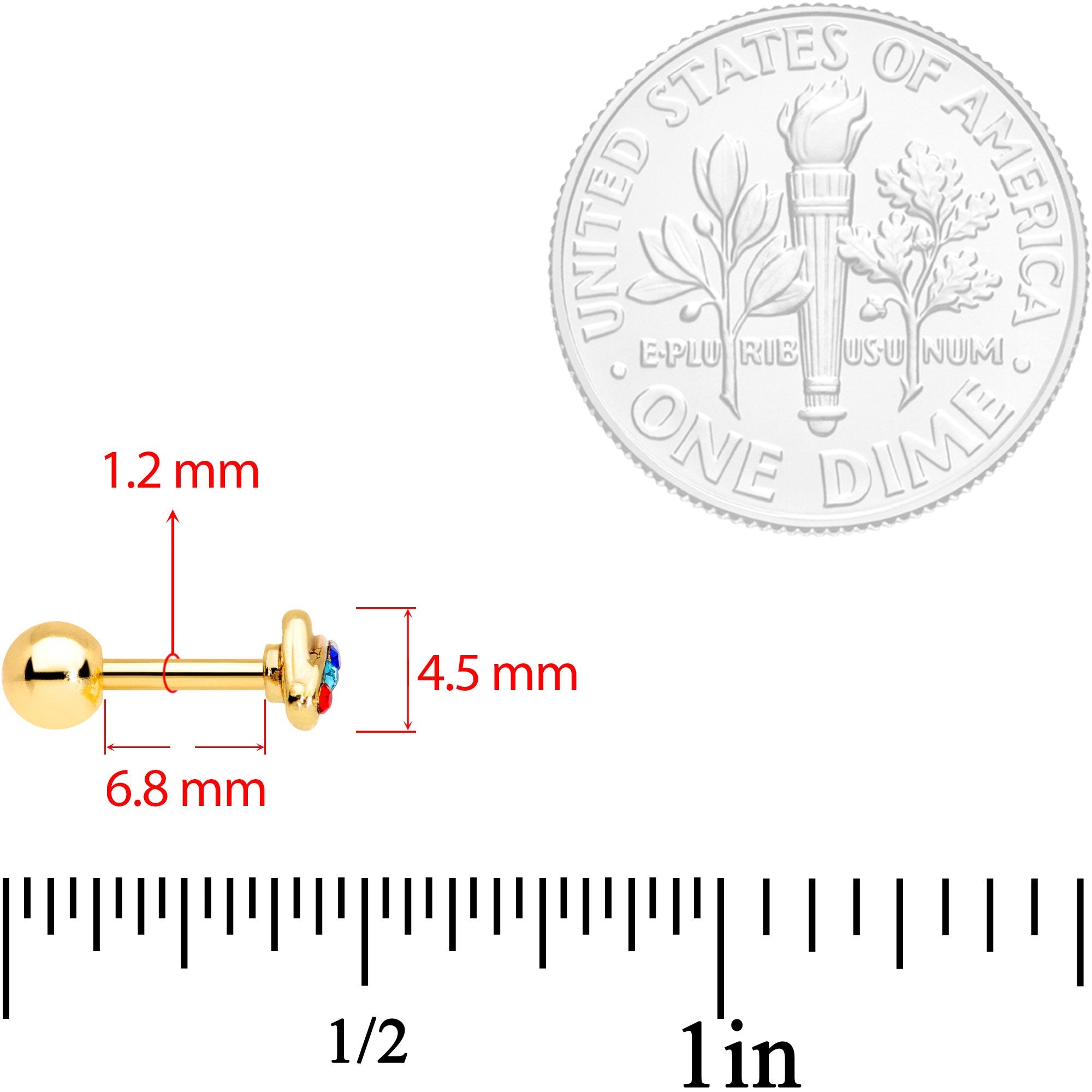 16 Gauge 1/4" Multicolor Gem Gold Tone UFO Cartilage Tragus