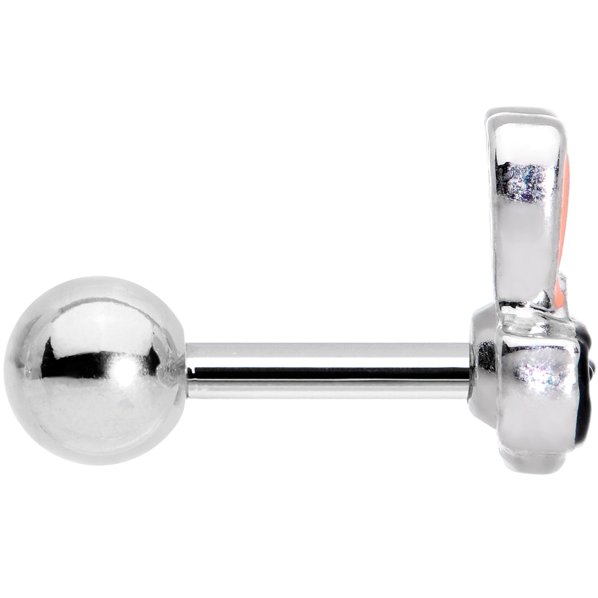 The Easter Bunny is quite the intellectual nowadays and he's just dying to whisper all his knowledge into your ear! This 16 gauge cartilage earring is made with a 6mm durable 316L surgical grade stainless steel straight barbell and has a 3mm ball end. It features an adorable Easter Bunny charm. He is color inlaid to really emphasize every detail, from his white fur to the pink of his perky ears, to his black thick-framed glasses. And like most rabbits, he likes to move around...this earring works beautifully in multiple piercings including the conch, tragus, and helix. Pop him into your piercing, no doubt he'll teach you something new!