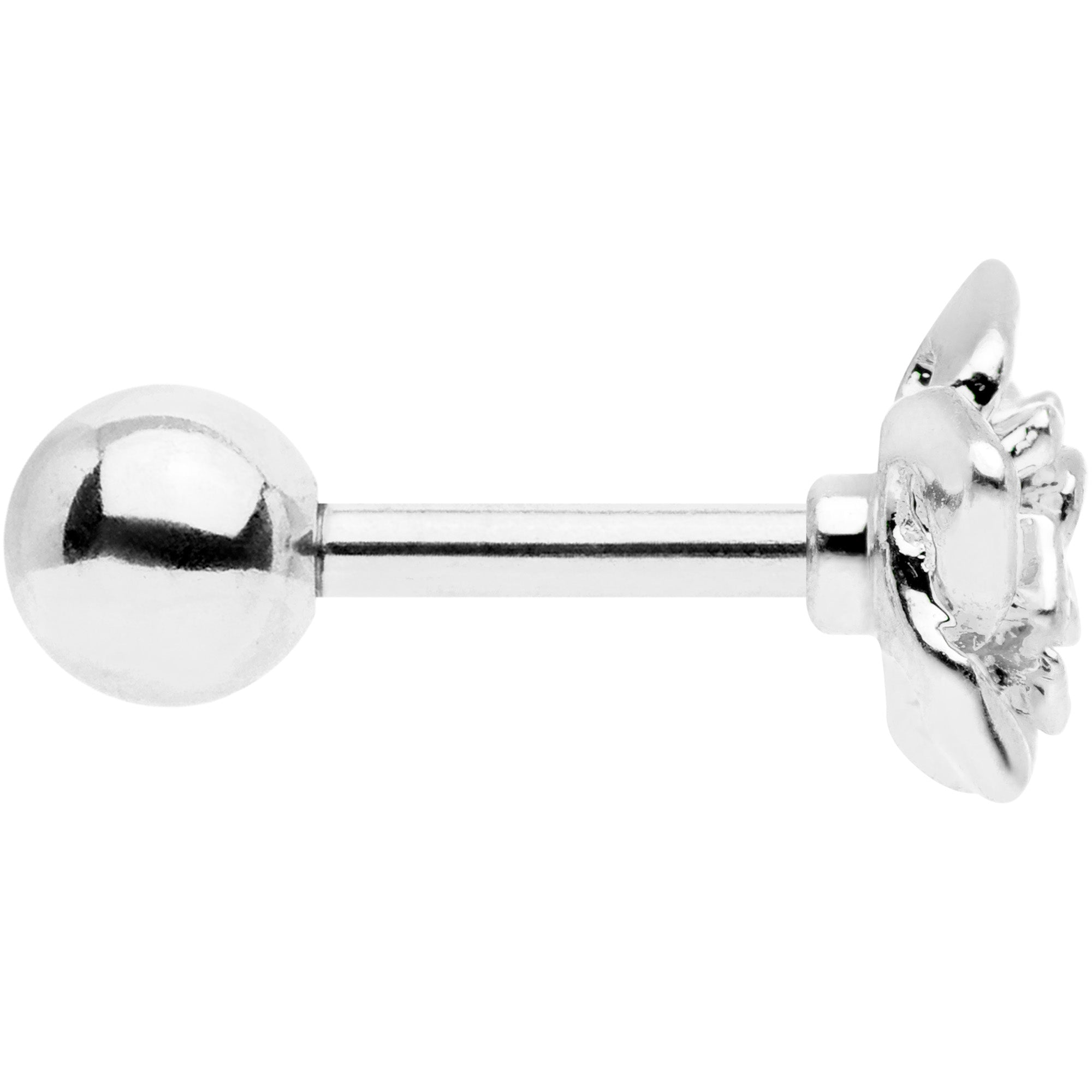 A rose by any other name....wouldn't be nearly as cool as this 16 gauge cartilage stud! It's made with a 6mm durable 316L surgical grade stainless steel straight barbell with a 4mm ball end. It features a rose with openwork petals, giving it a light and airy feel. This cartilage stud works well in multiple piercings including the tragus, conch, and helix. So now you can rock this rose almost anywhere you want!