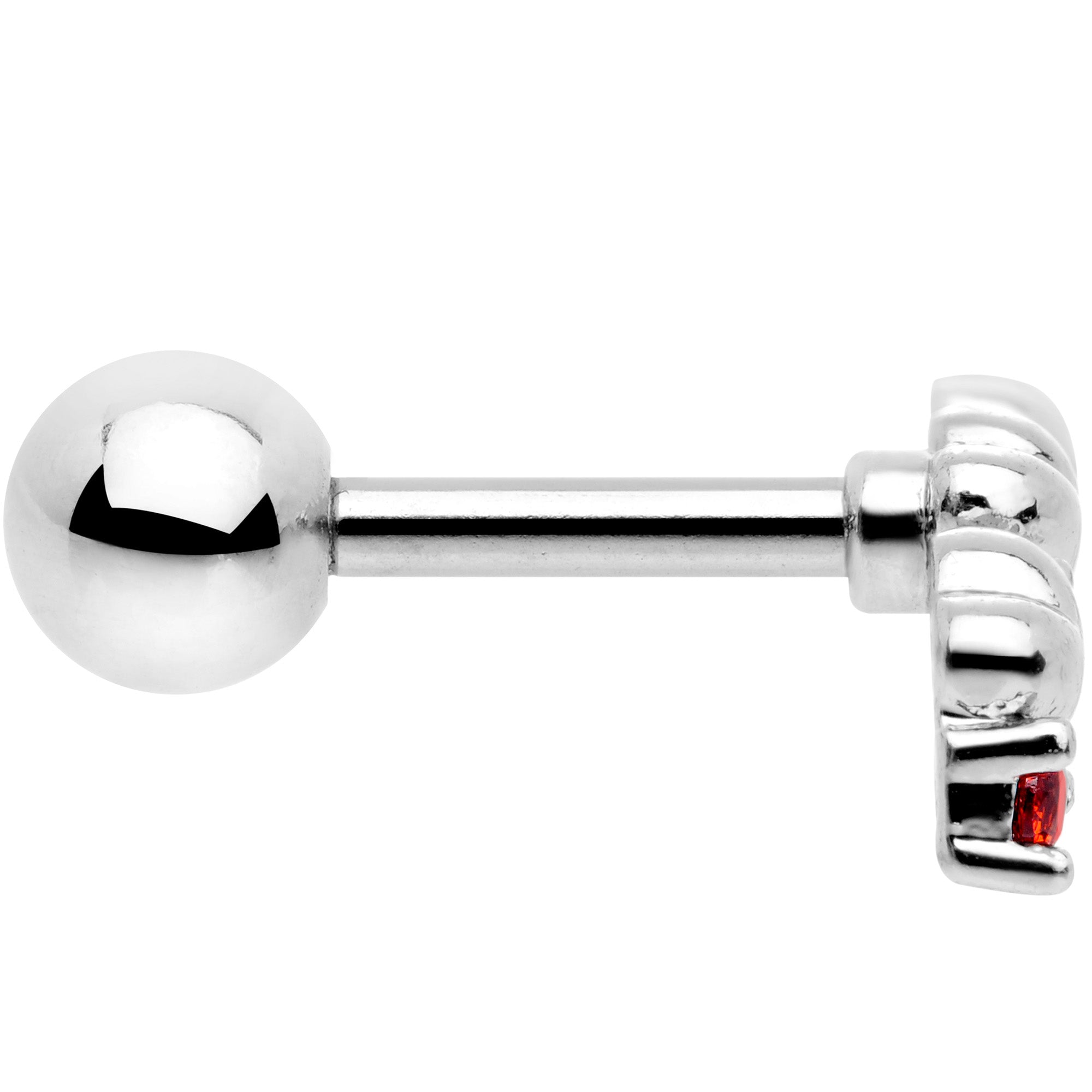 If you want to give your cartilage piercings a little love, look no further than this 16 gauge tragus stud! It's made with a 6mm durable 316L surgical grade stainless steel straight barbell and has a 4mm ball end. It features three tiny Valentine's Day hearts set in an arching shape and set apart from each other by a tiny red cubic zirconia gem. This cartilage stud works well in multiple piercings including cartilage piercings like the tragus, helix, and some conch piercings. Pop this in your piercing - you won't be the only one who loves the way it looks!
