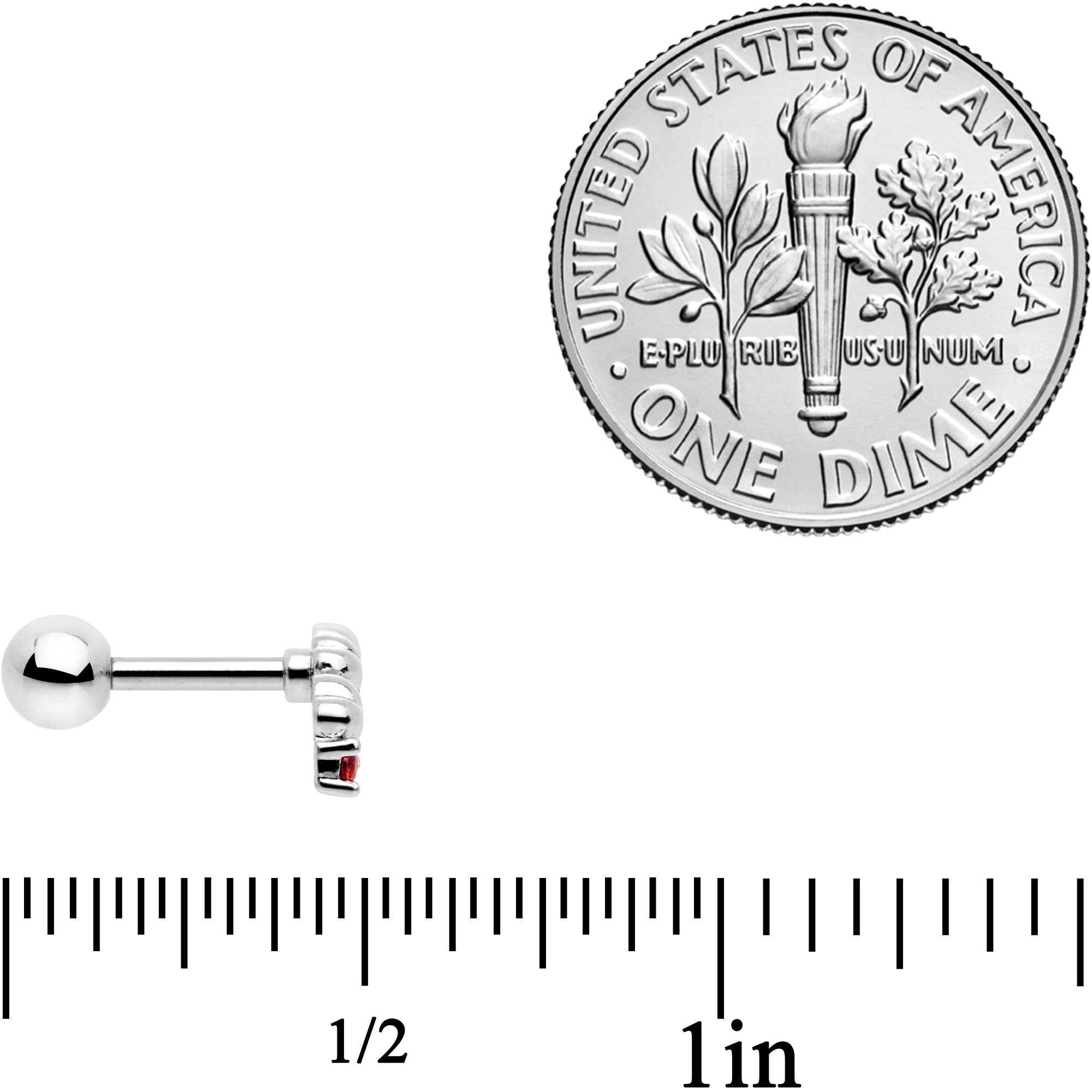 16 Gauge 1/4 Red CZ Gem Tiny Hearts Cartilage Tragus Earring