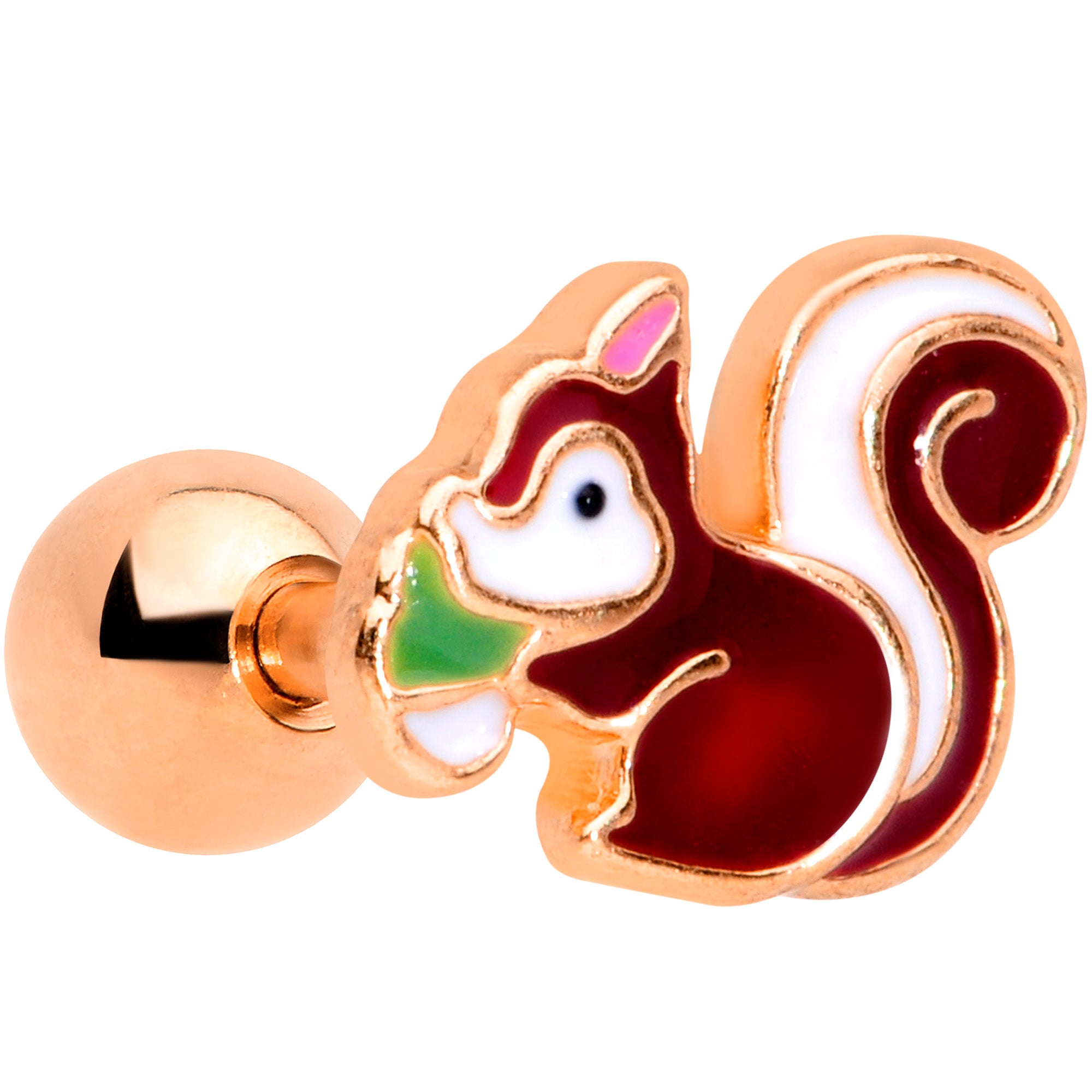 16G 1/4 Rose Gold Tone Snacking Squirrel Cartilage Tragus Earring