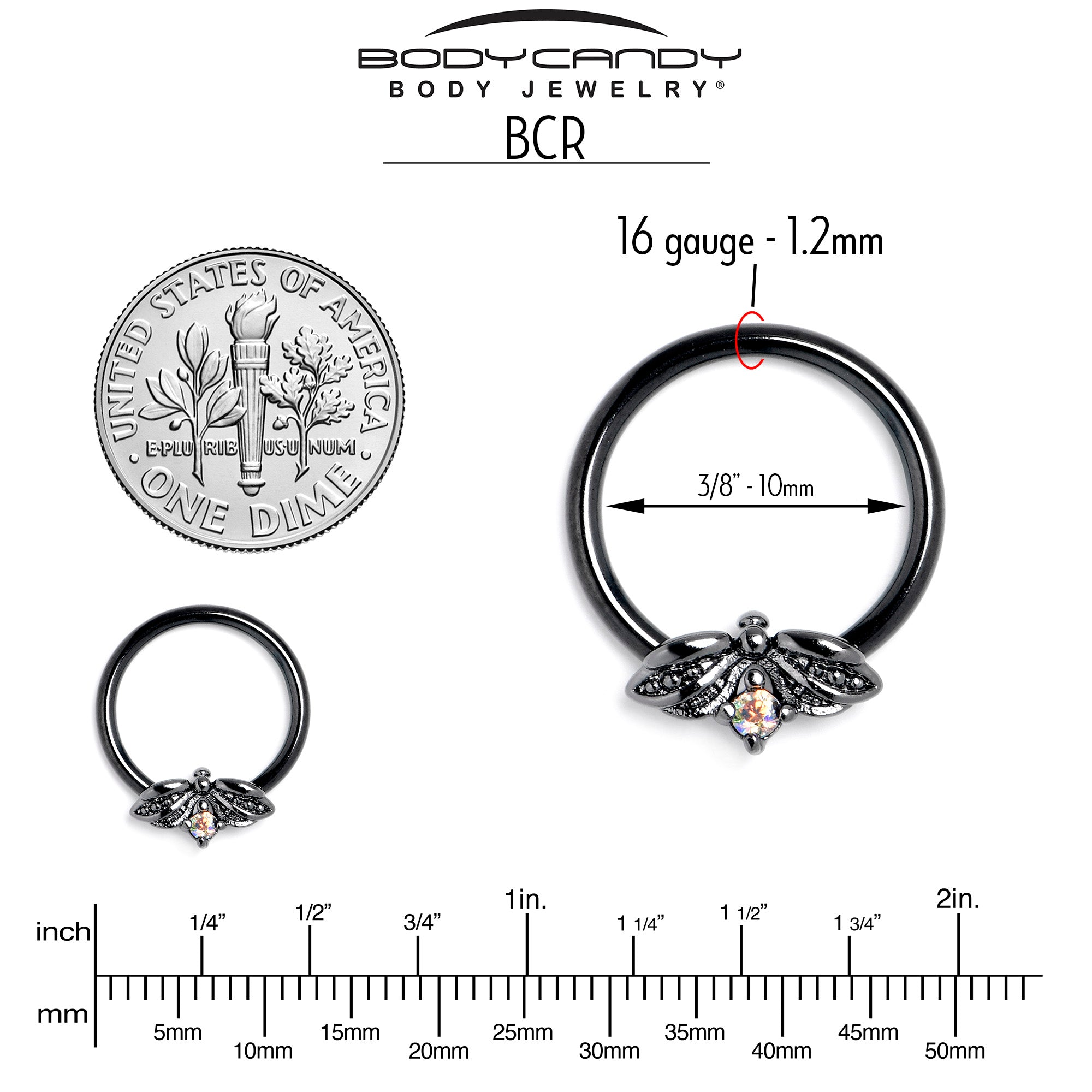 16 Gauge 3/8 Aurora Gem Black Beauty Bug BCR Captive Ring
