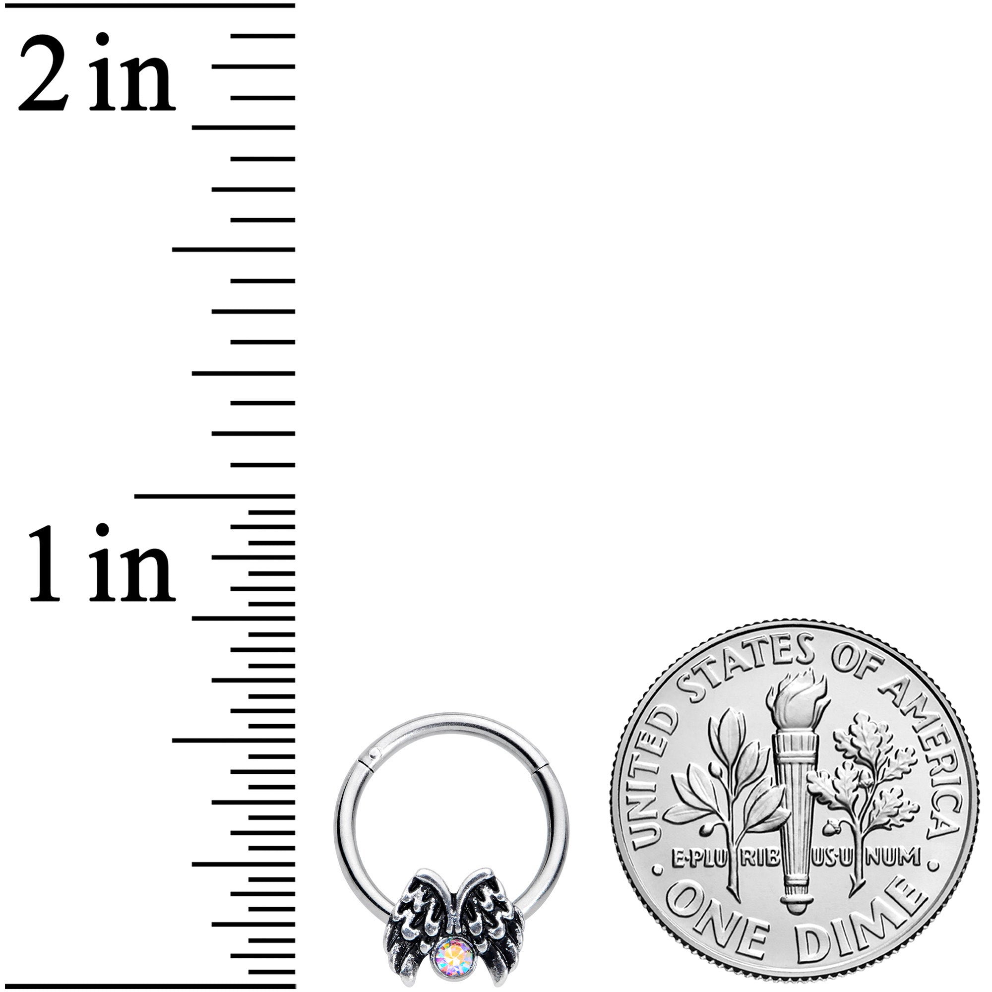 16G 3/8 Aurora Gem Holiday Angels Wings Hinged Segment Ring