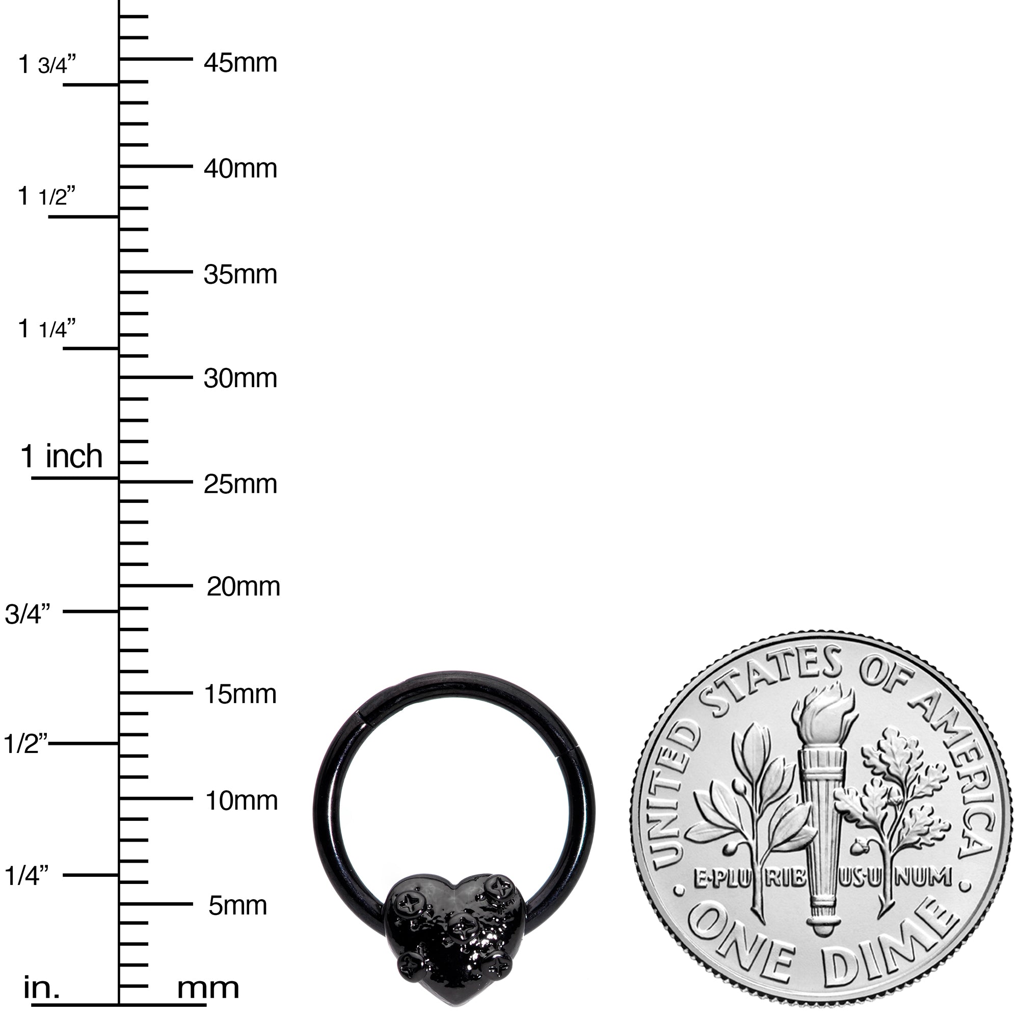 16G 3/8 Black Heart Valentines Day Hinged Segment Ring