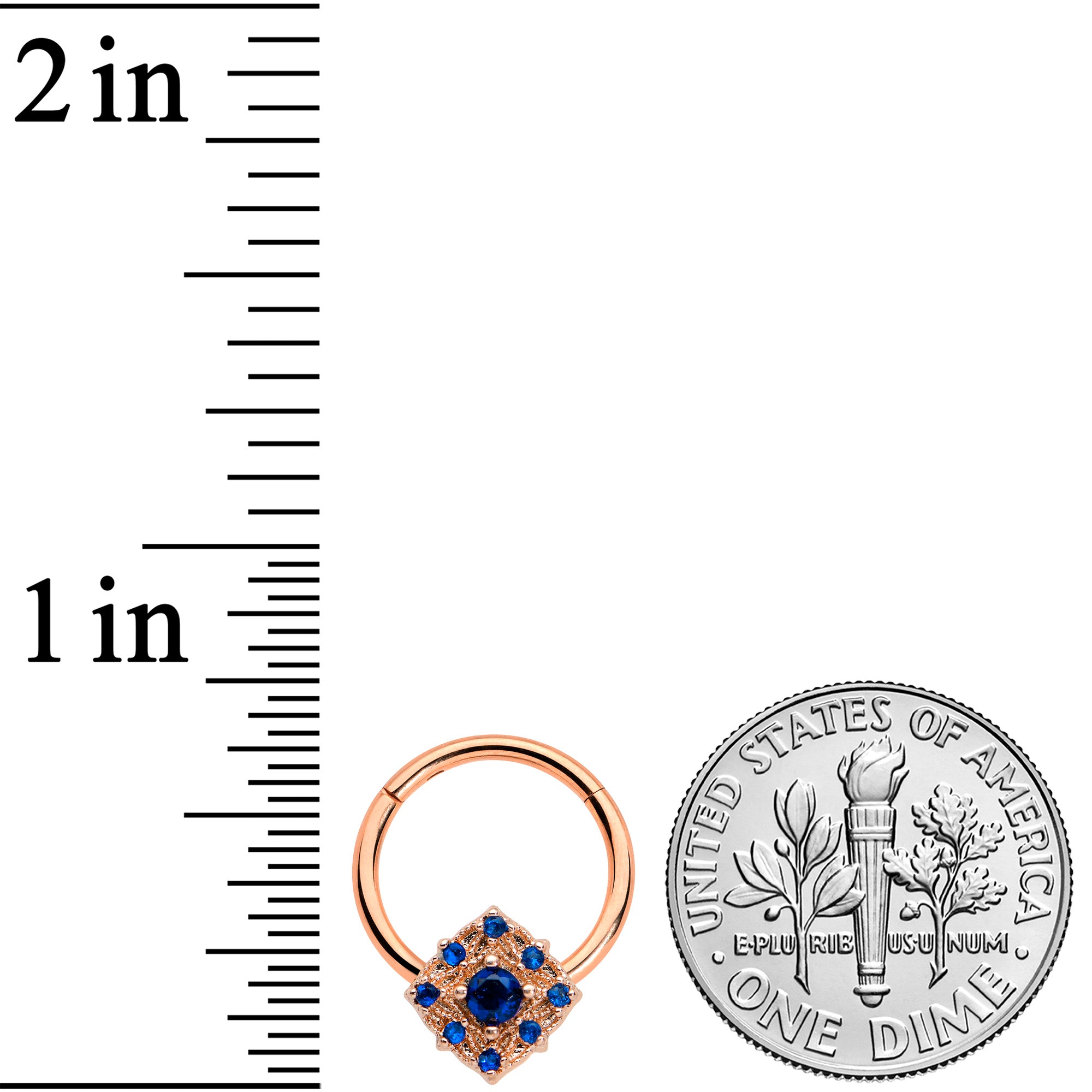 16G 3/8 Blue Gem Rose Gold Tone Night Star Hinged Segment Ring