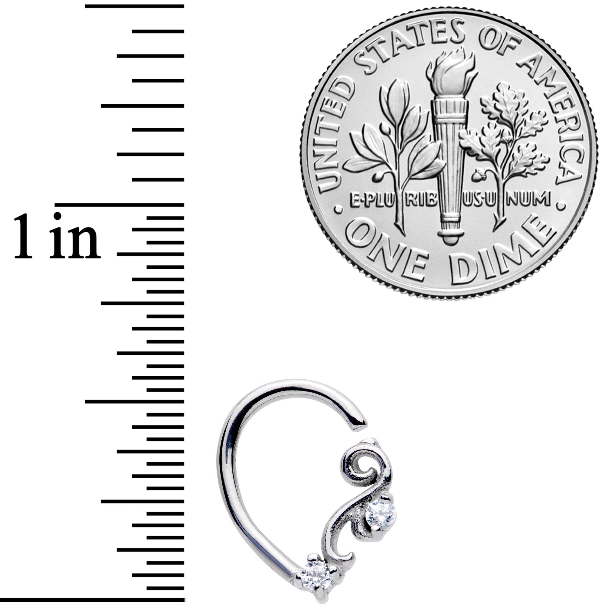 Half a heart isn't just better than none, it's better than anything with this 16 gauge cartilage earring! It's 10mm and made with 316L surgical grade stainless steel. It features a half-heart shape with clear cubic zirconia gems for an elegant appearance. This tragus earring is designed to be worn in the left ear and is super easy to insert and remove - just give it a light twist, insert it into your piercing and gently bend it closed. You'll love that because it works so well in multiple piercings including daith, tragus, rook, and helix.
