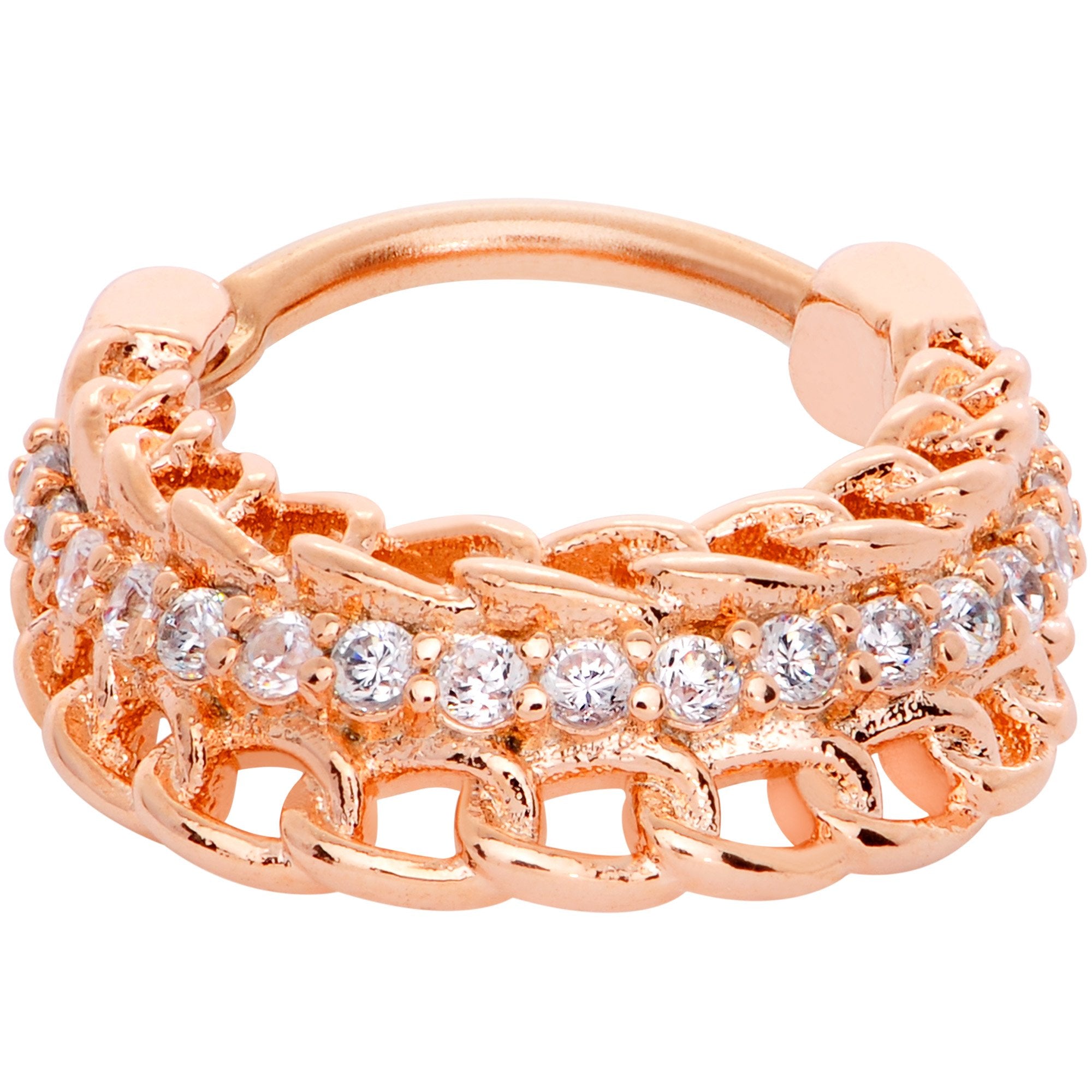 16 Gauge 3/8" Clear CZ Gem Rose Gold Tone Chain Hinged Septum Ring