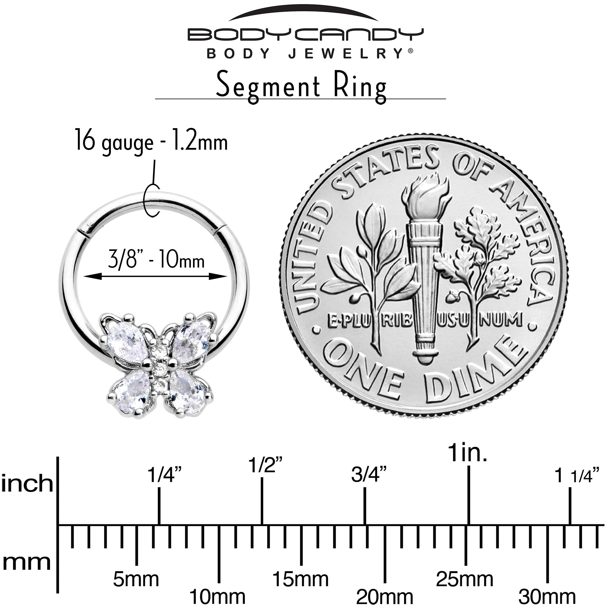 16 Gauge 3/8 Clear Gem Baroque Beauty Butterfly Hinged Segment Ring