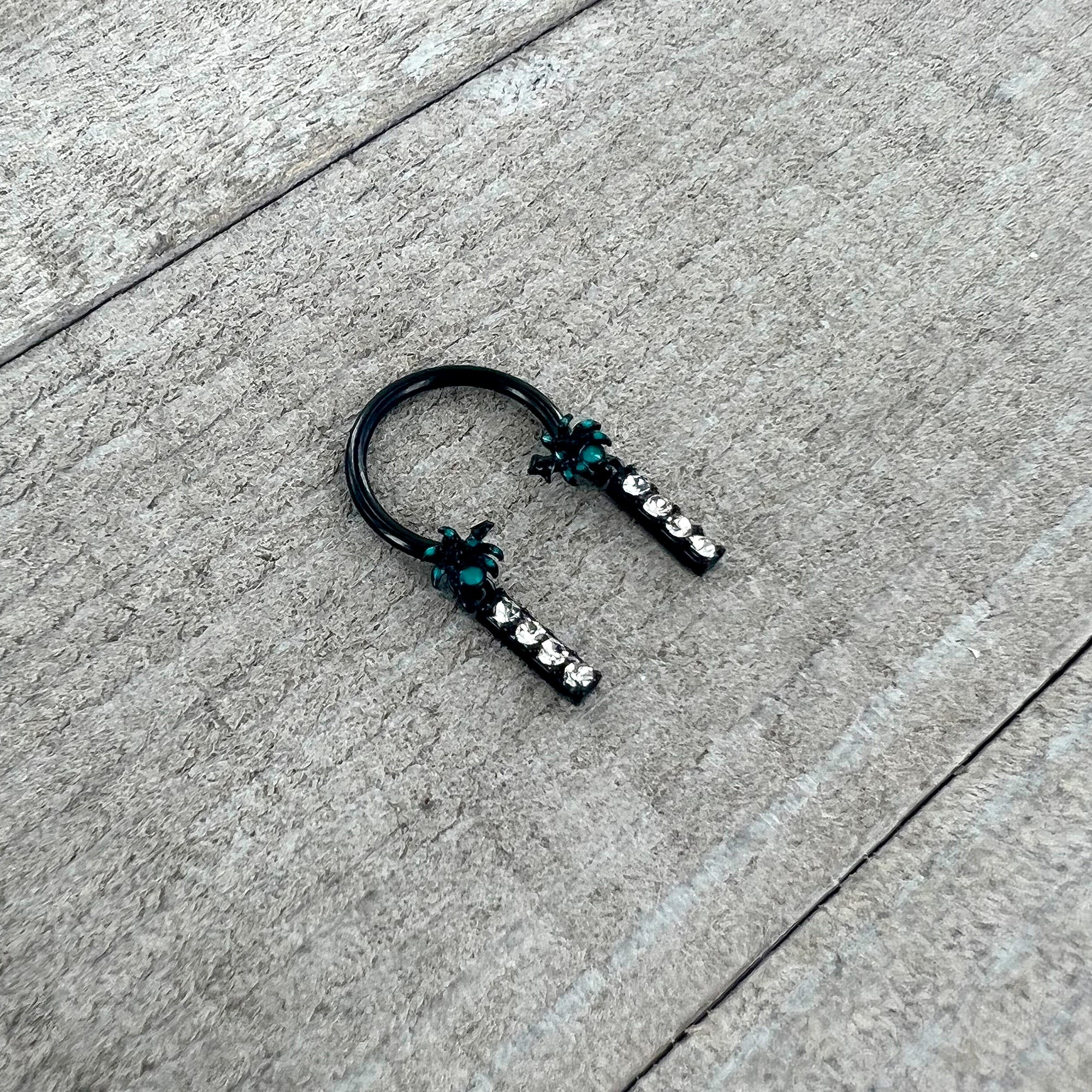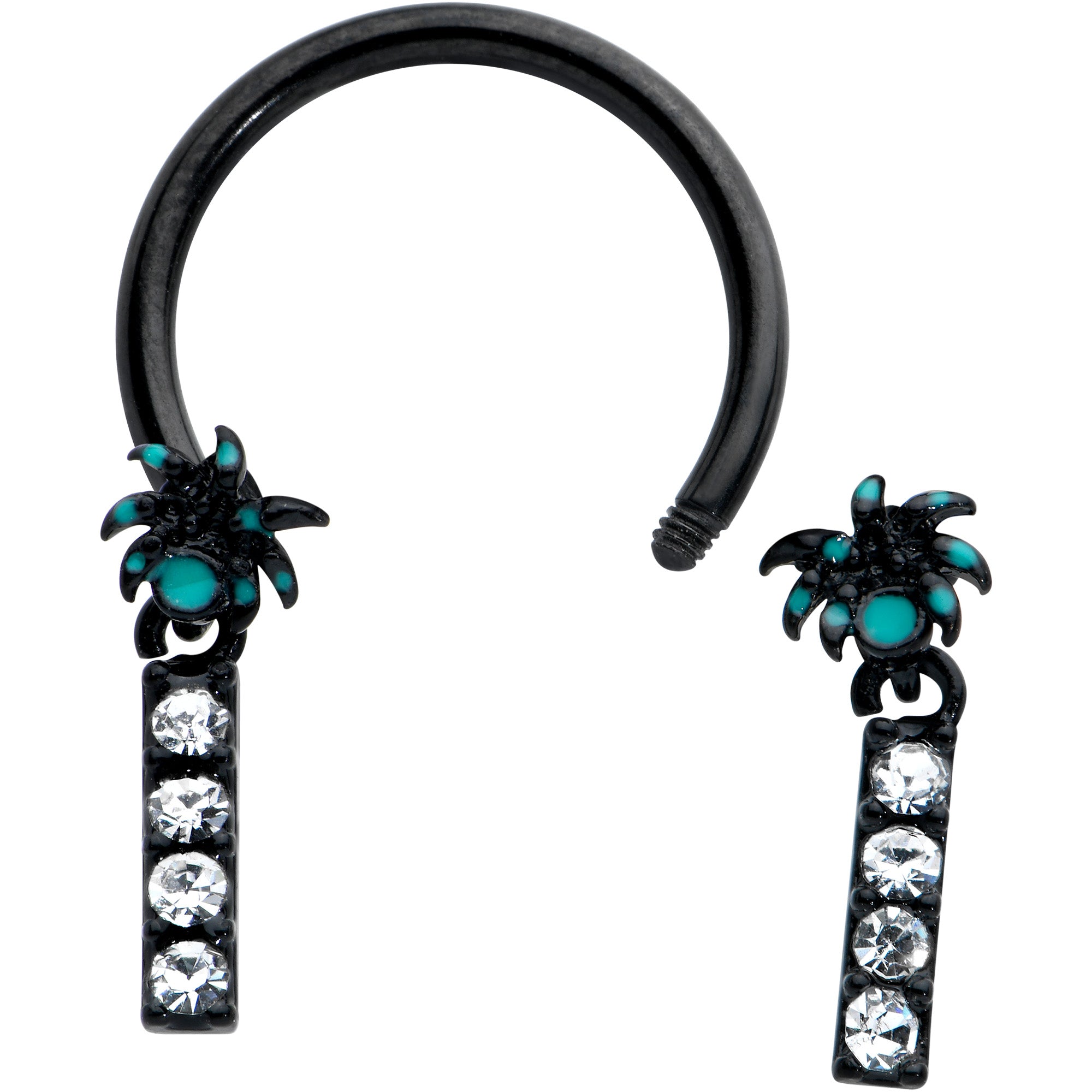 16G 3/8 Clear Gem Black Night Palm Tree Dangle Horseshoe
