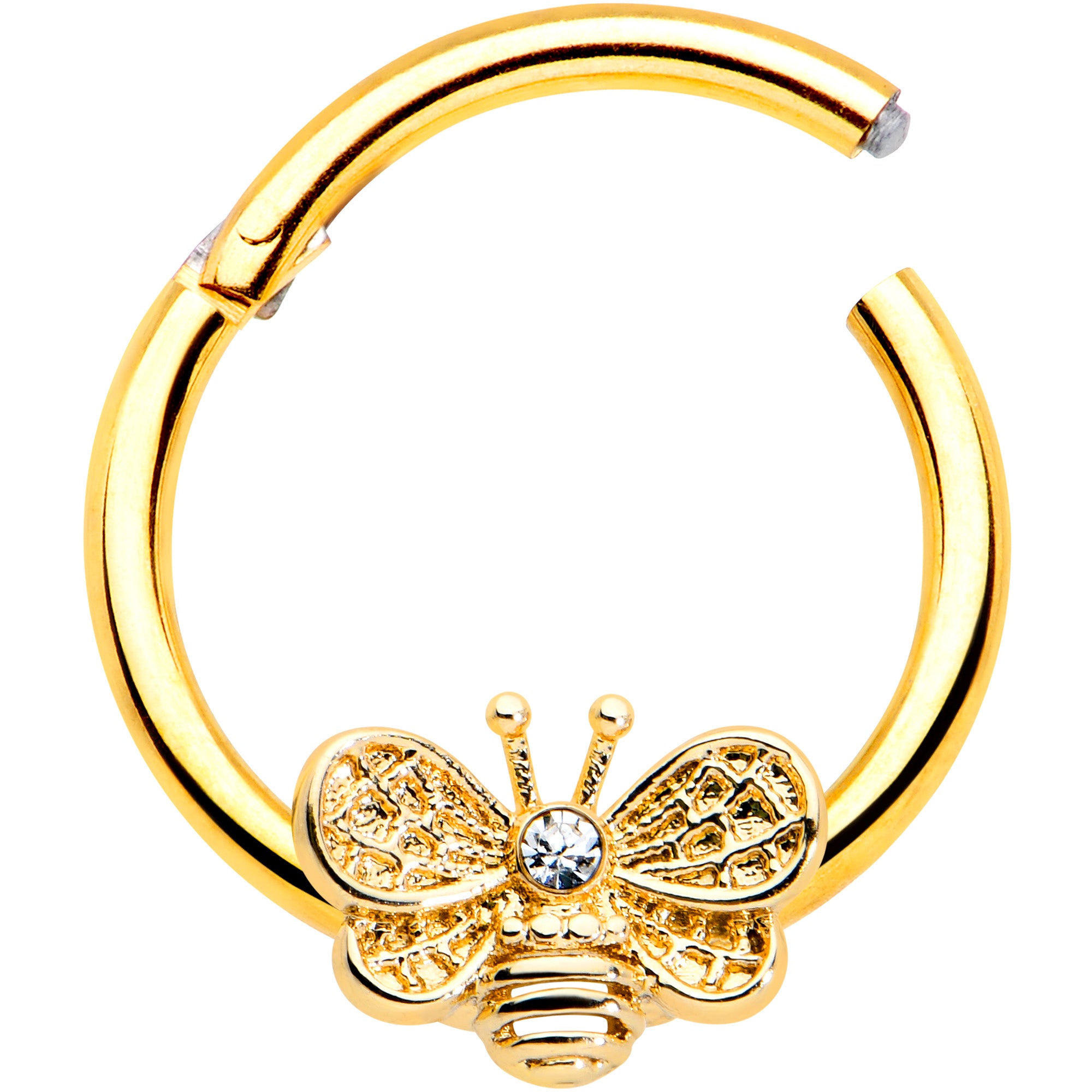 16 Gauge 3/8 Clear Gem Gold Tone Beauty Bee Hinged Circular Ring