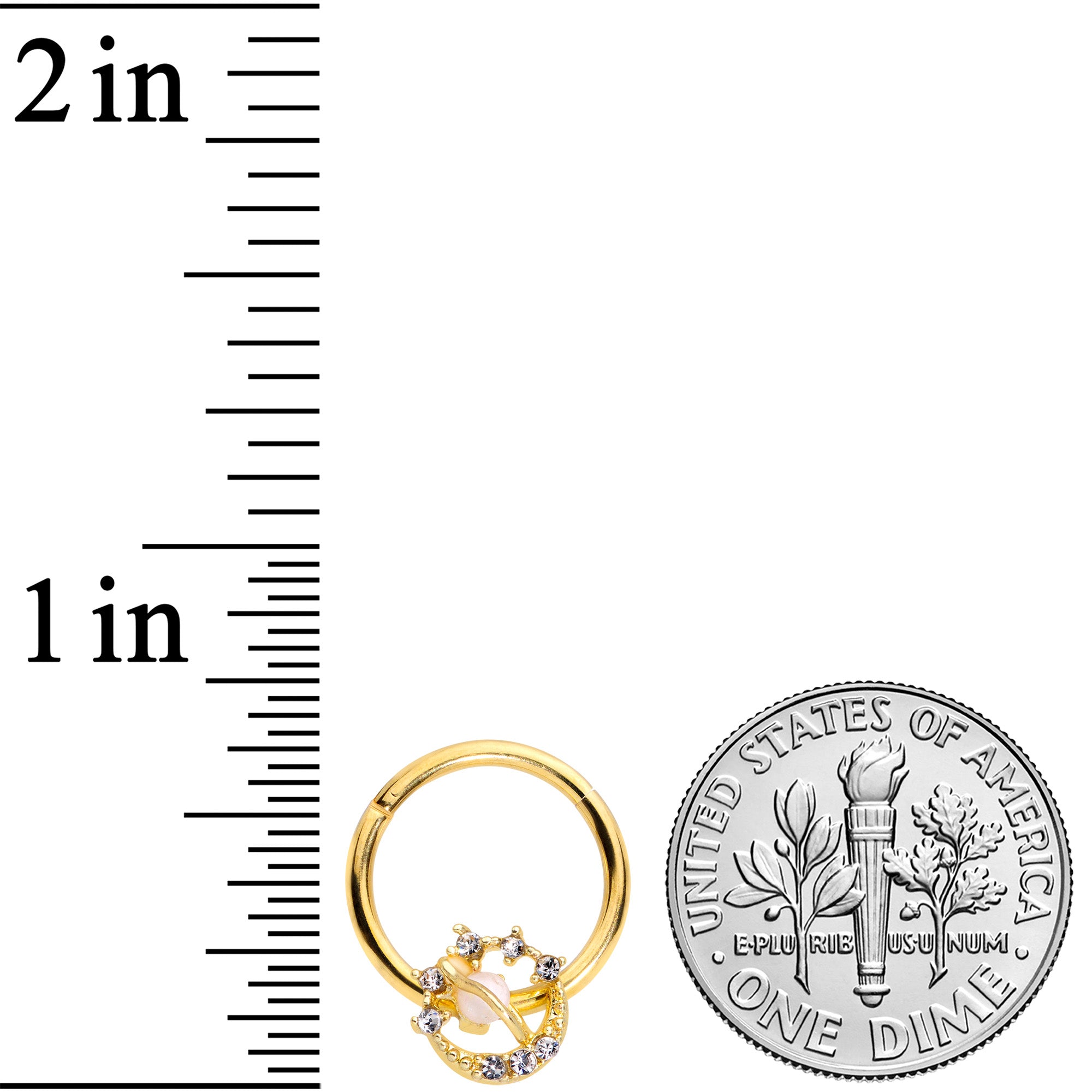 16G 3/8 Clear Gem Gold Tone White Faux Opal Saturn Hinged Segment Ring