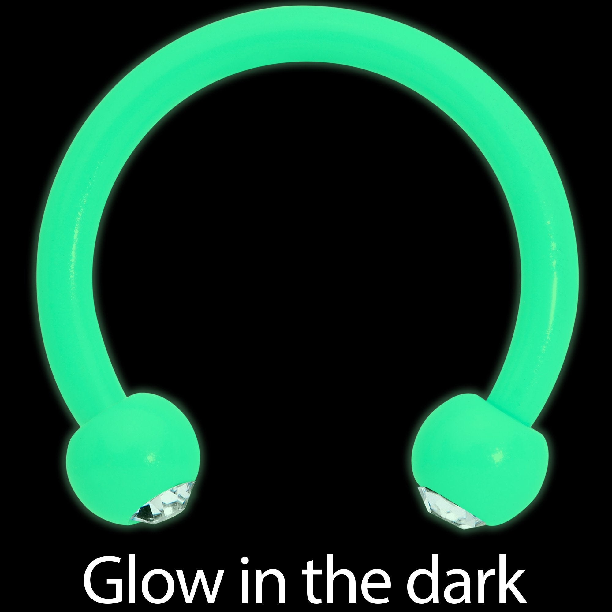 16G Clear Gem Teal Glow in the Dark Horseshoe Circular Barbell