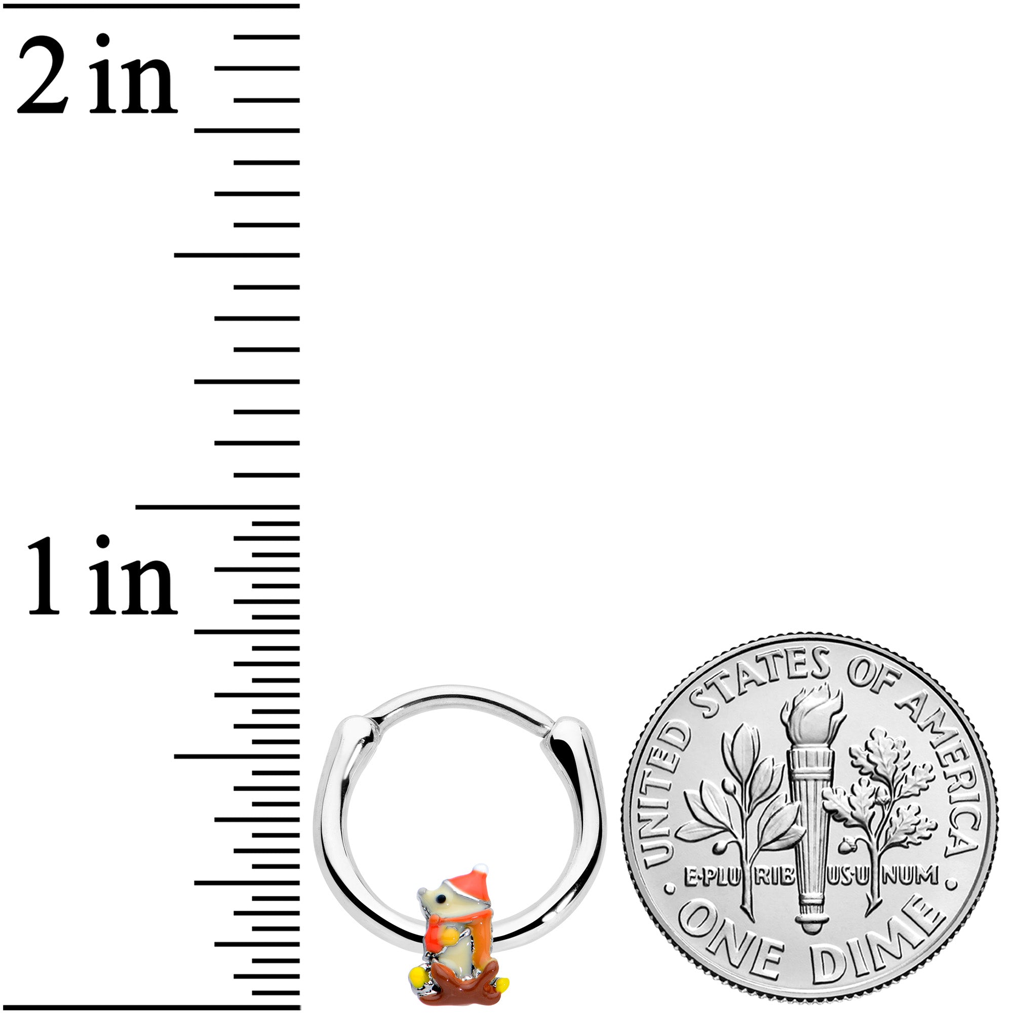 The spiky fellow on this 16 gauge cartilage jewelry is all bundled up for the winter! It's made with a 10mm durable 316L surgical grade stainless steel hinged curved barbell. It features a hedgehog charm, with a white body and tan snout. This hedgehog is all bundled up in an orange hat and scarf to keep the chill away. It also features a clicker design that makes insertion and removal a snap and you can rock it in multiple piercings including tragus, helix, and daith. This sweet little hedgehog cartilage piercing jewelry is sure to warm your heart!