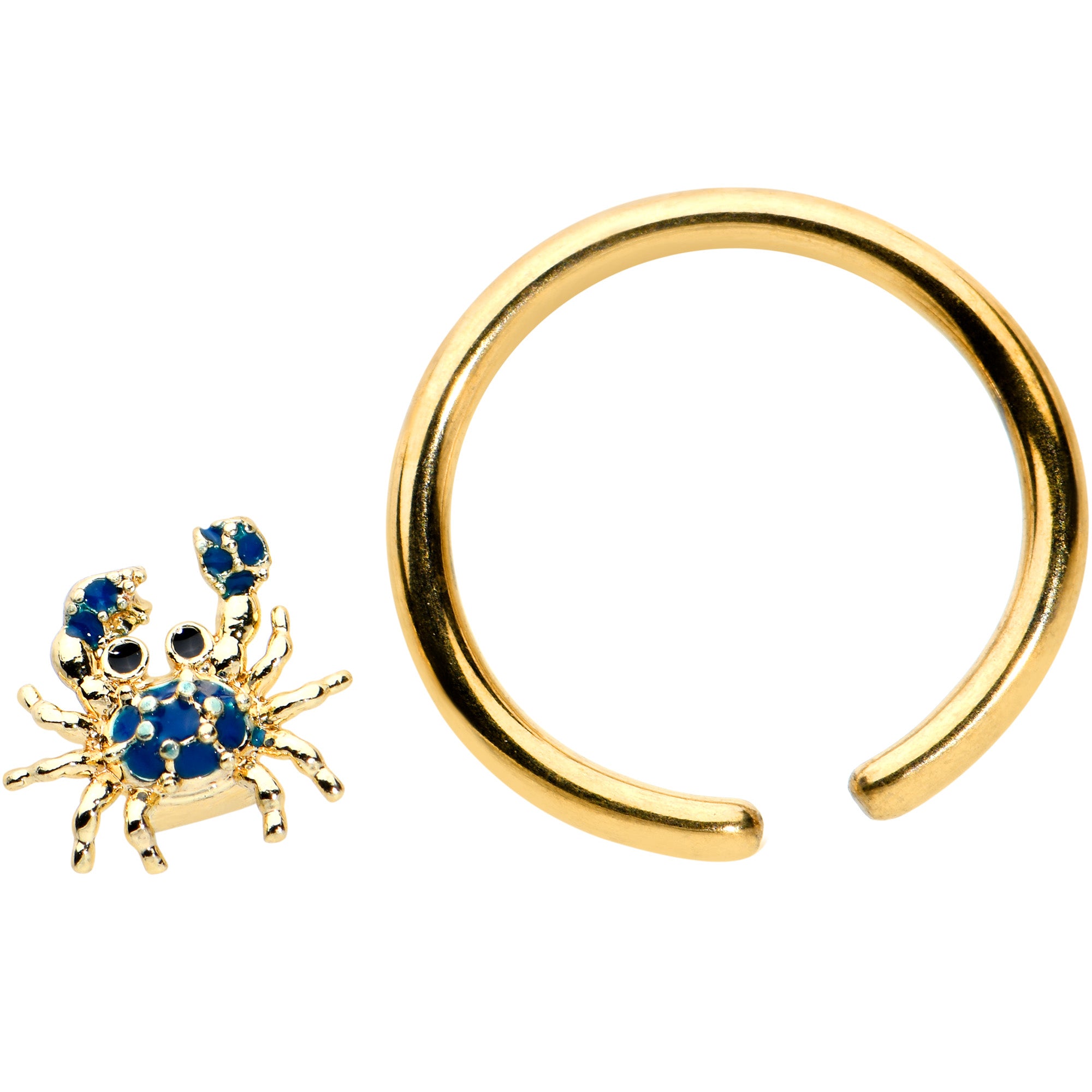 16 Gauge 3/8 Gold Tone Blue Crab Nautical BCR Captive Ring