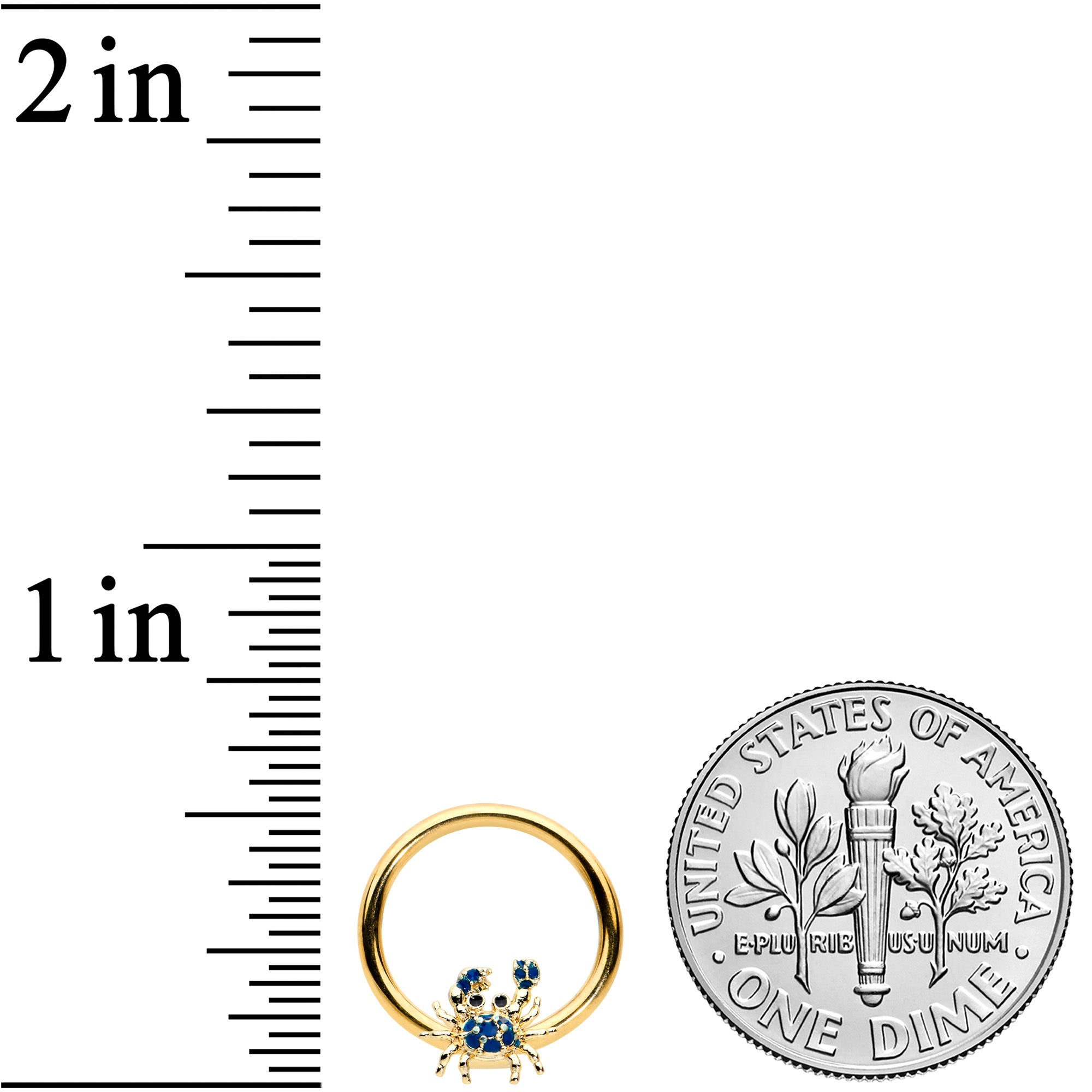 16G 3/8 Gold Tone Blue Crab Nautical BCR Captive Ring