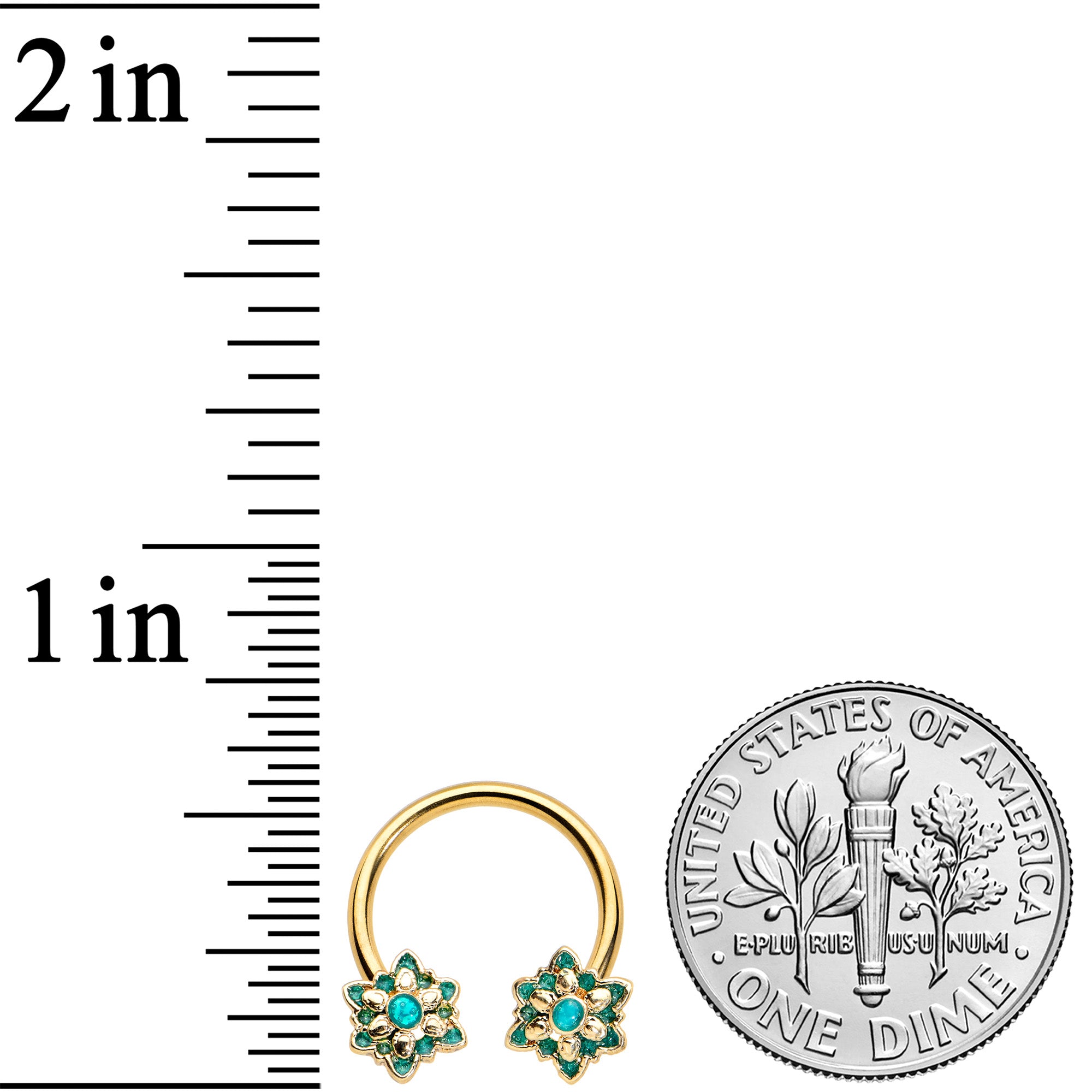 16 Gauge 3/8 Gold Tone Blue Orb Snowflake End Horseshoe Curved Barbell