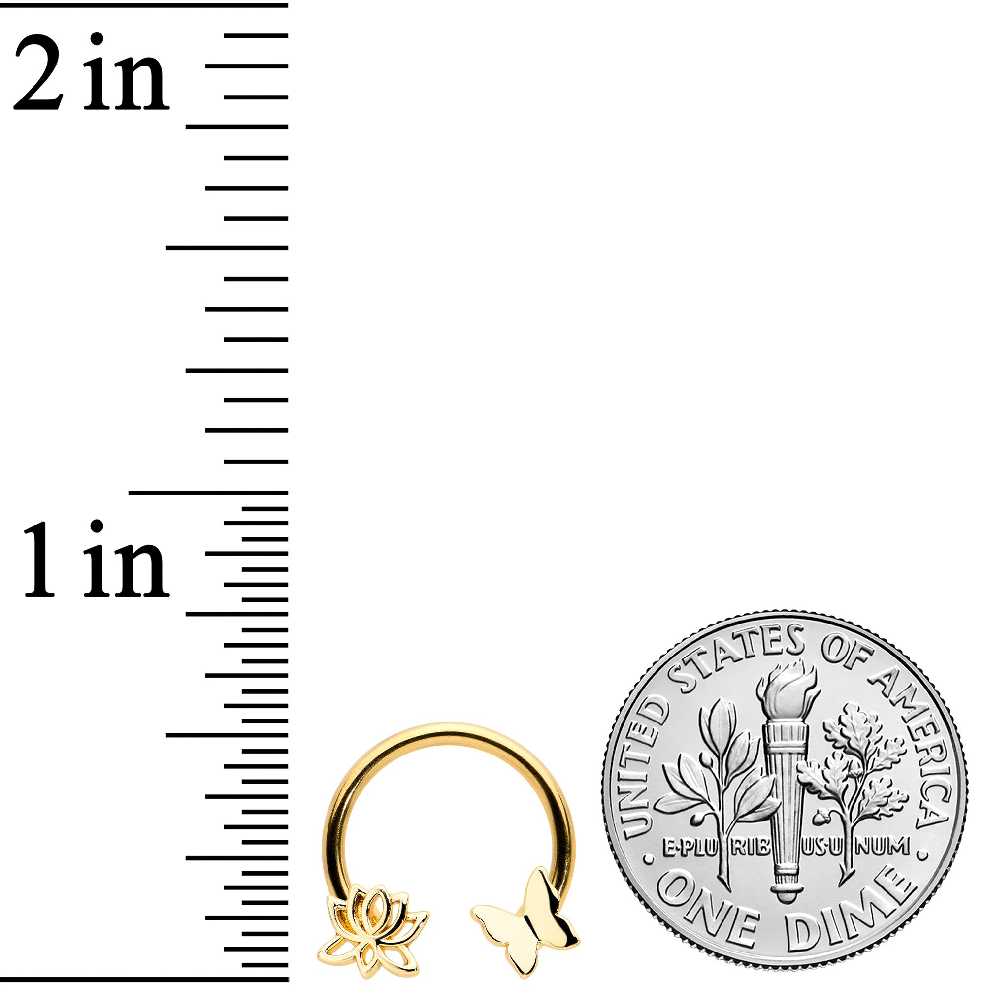 16 Gauge 3/8 Gold Tone Butterfly Lotus Flower Horseshoe Circular Barbell