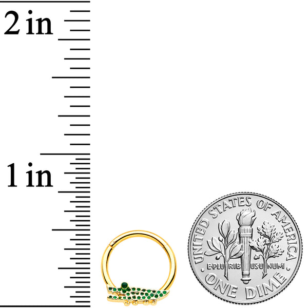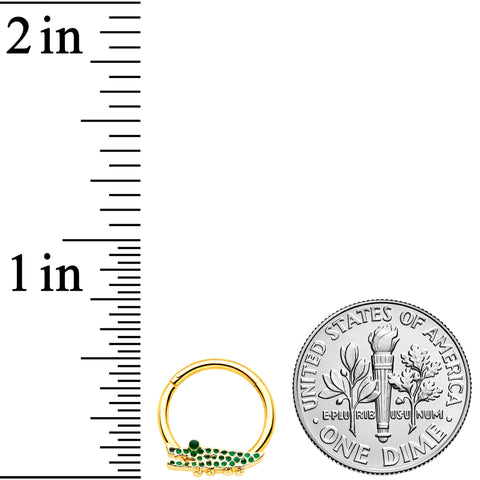 16G 3/8 Gold Tone Hungry Green Alligator Hinged Segment Ring