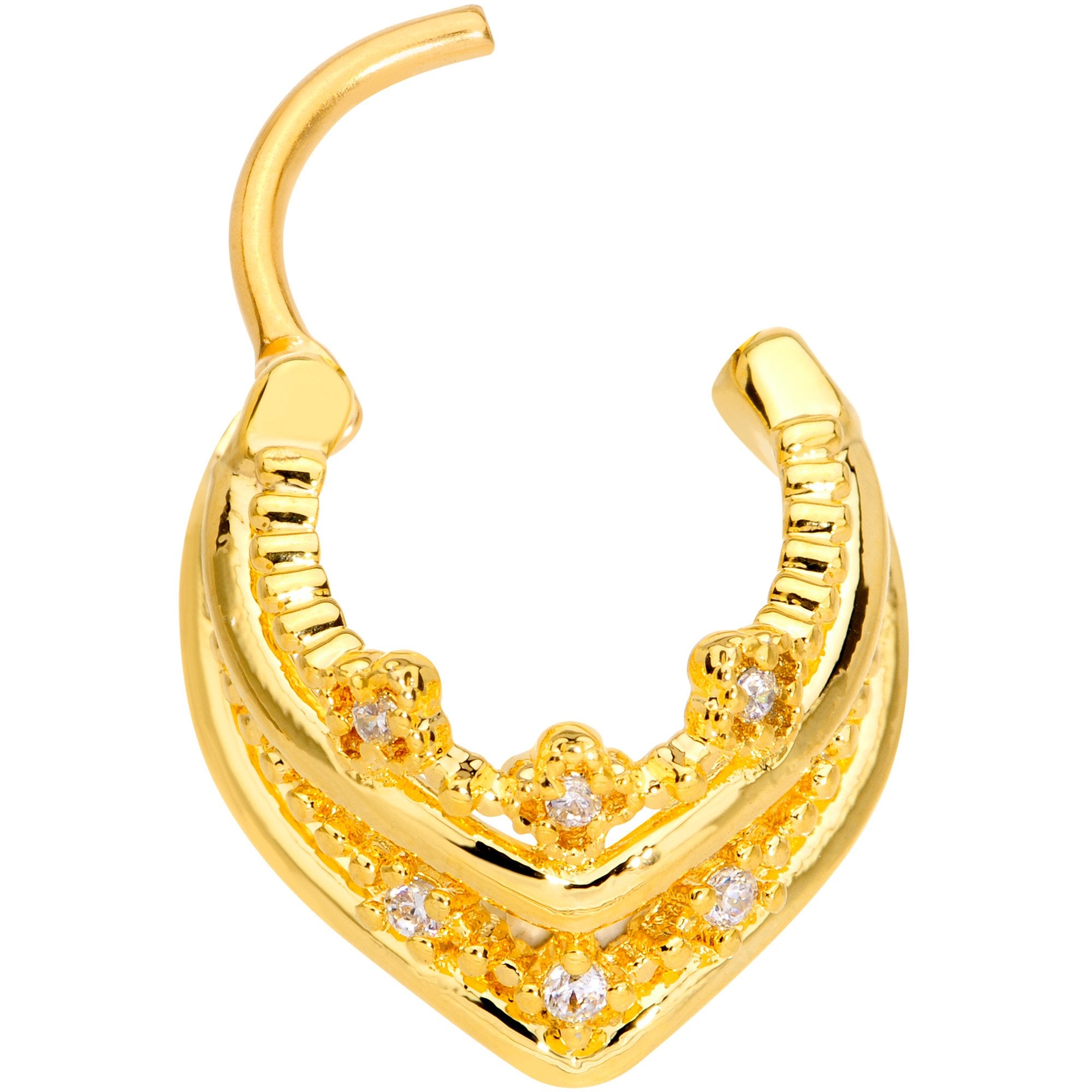 16G 3/8 Gold Tone Pretty Princess Hinged Septum Ring