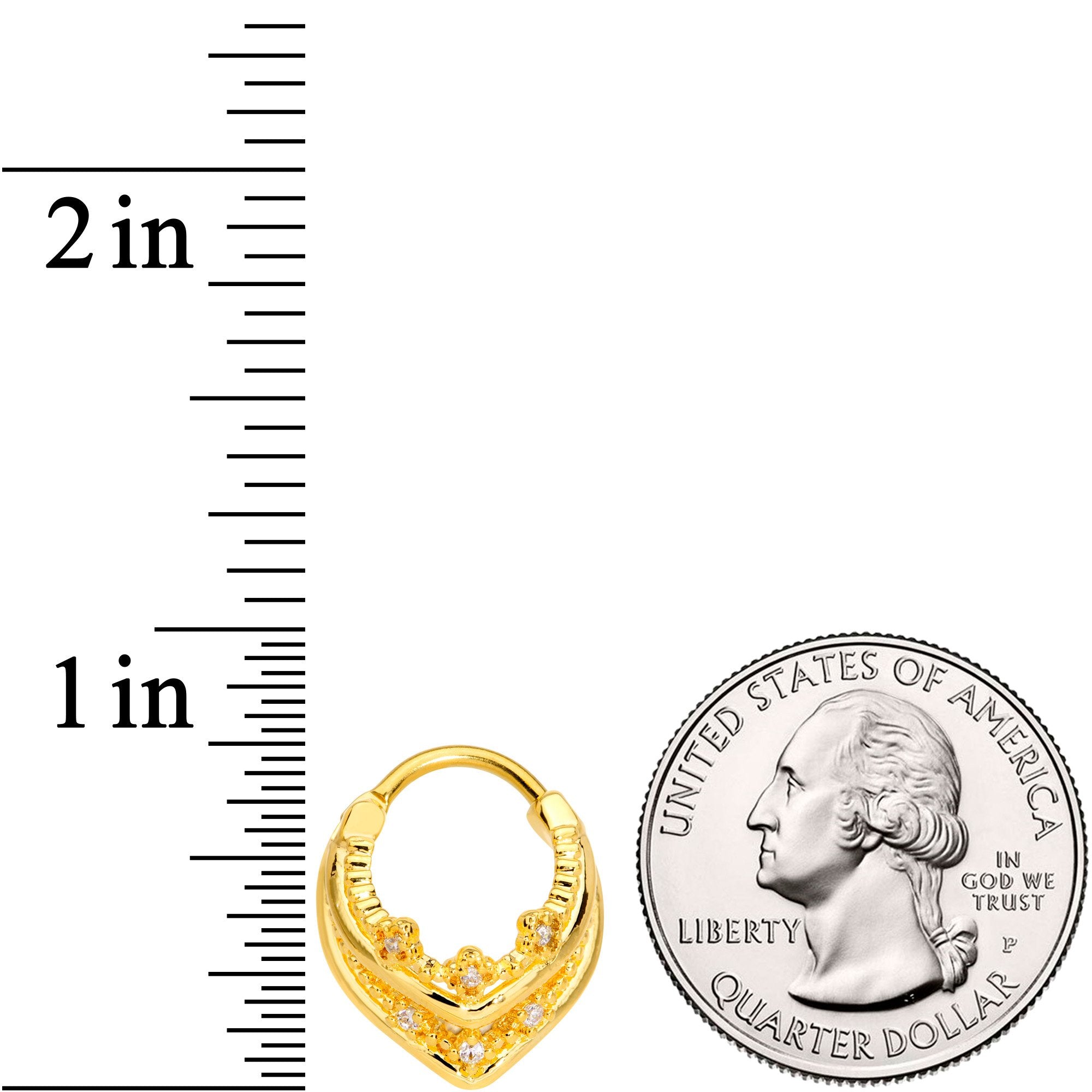 16 Gauge 3/8" Gold Tone Pretty Princess Hinged Septum Ring