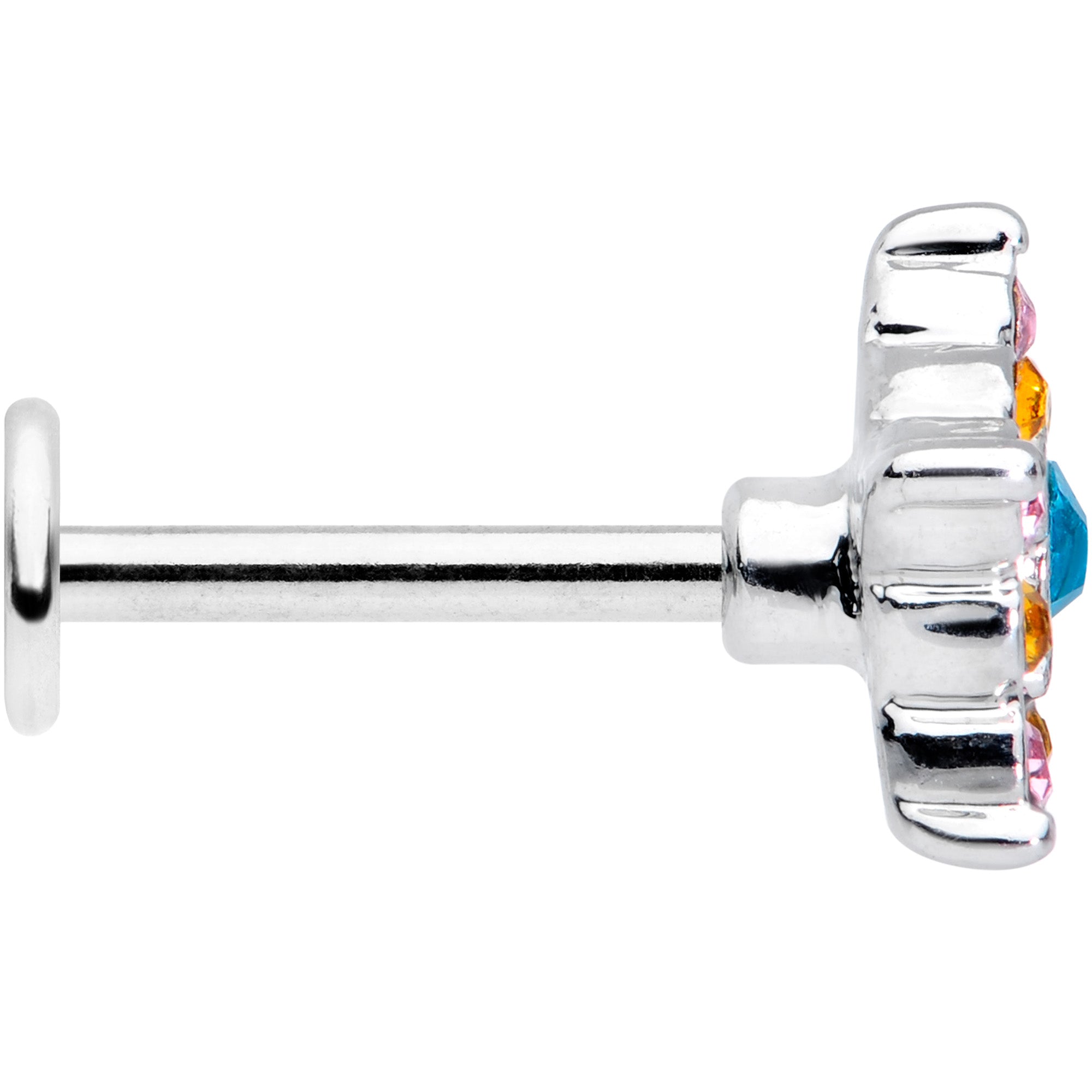16 Gauge 3/8 Pink Yellow Blue Gem Showy Star Labret Monroe Tragus