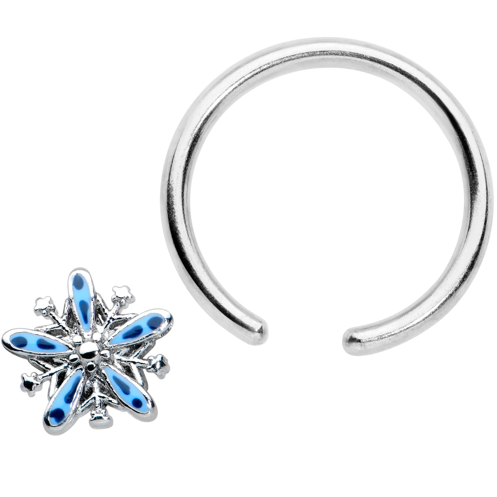 16G 3/8 Snowflake Blues Christmas BCR Captive Charm Ring
