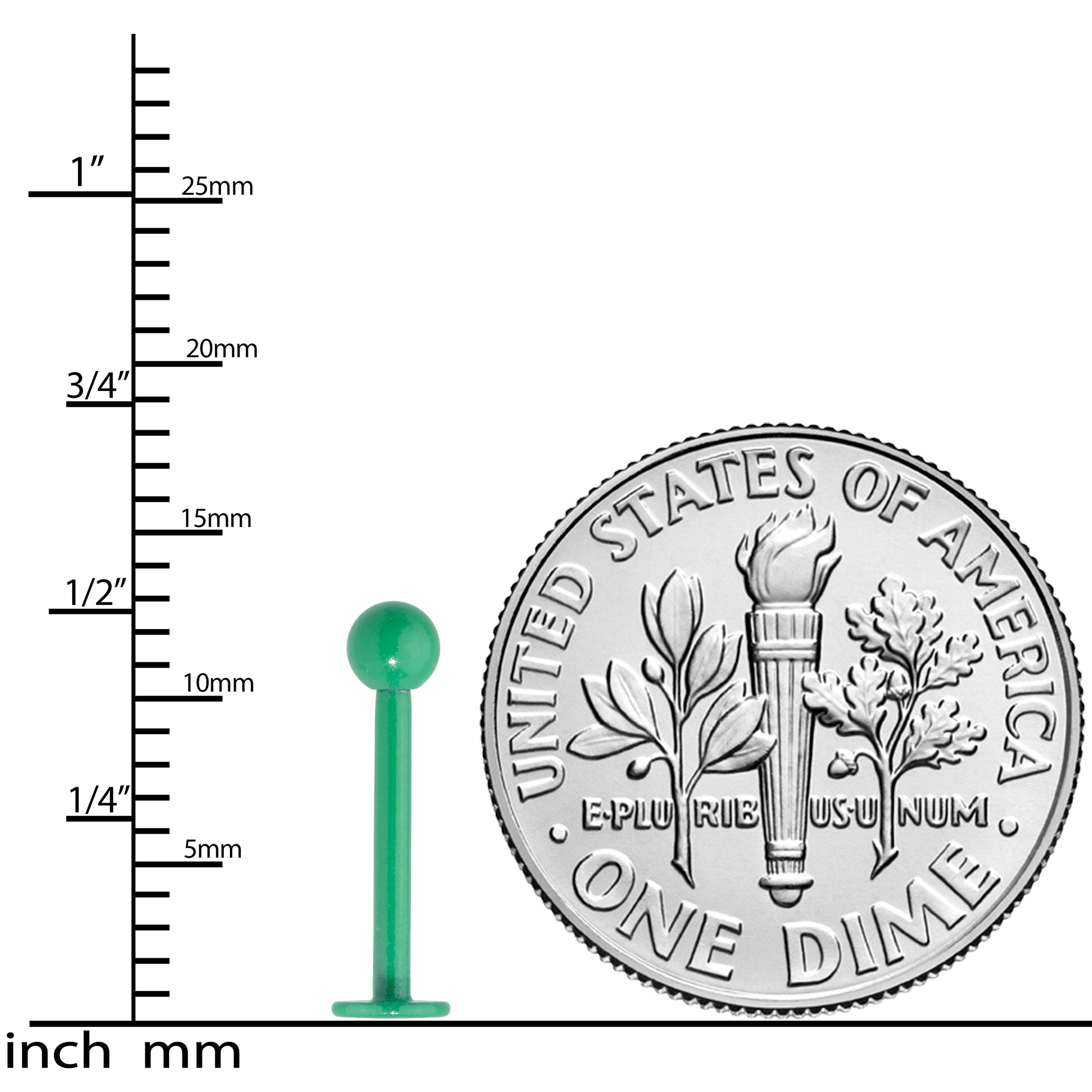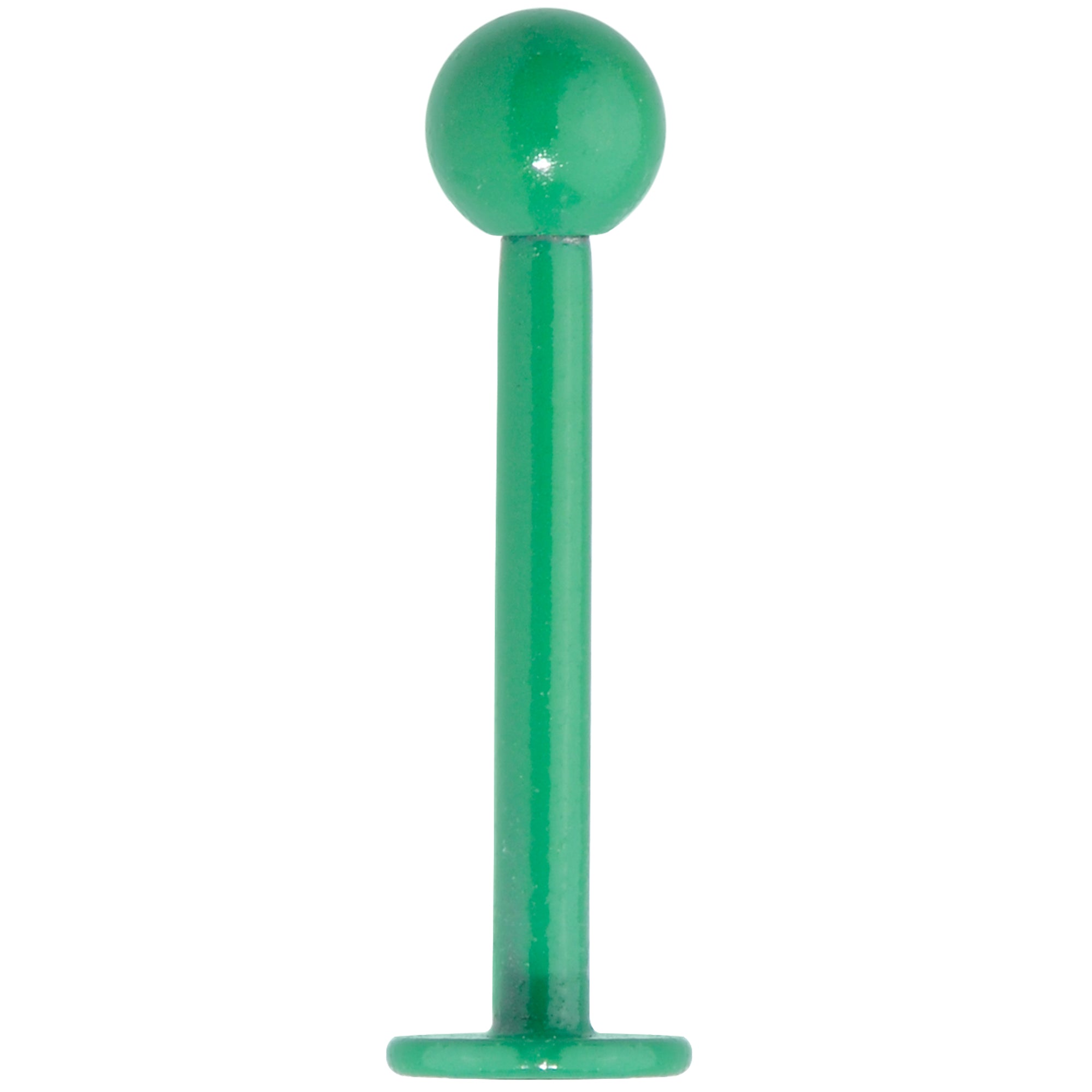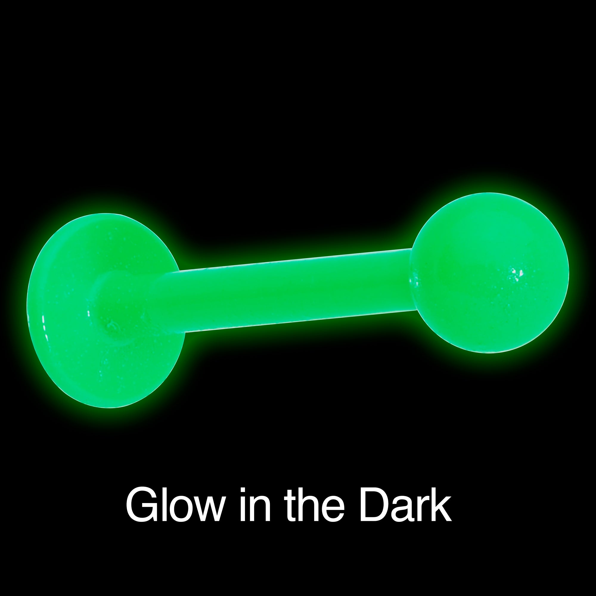 Ready for an illuminated blast of color? Then this vibrant labret jewelry is perfect for you because it's popping with a pretty teal burst of color and it features a glow in the dark effect! This 14 gauge monroe flatback stud is made with a 3/8" teal plated over 316L surgical grade stainless steel straight barbell. Works in a variety of piercings including labret, monroe, tragus, and other cartilage piercings. Collect each color today!
