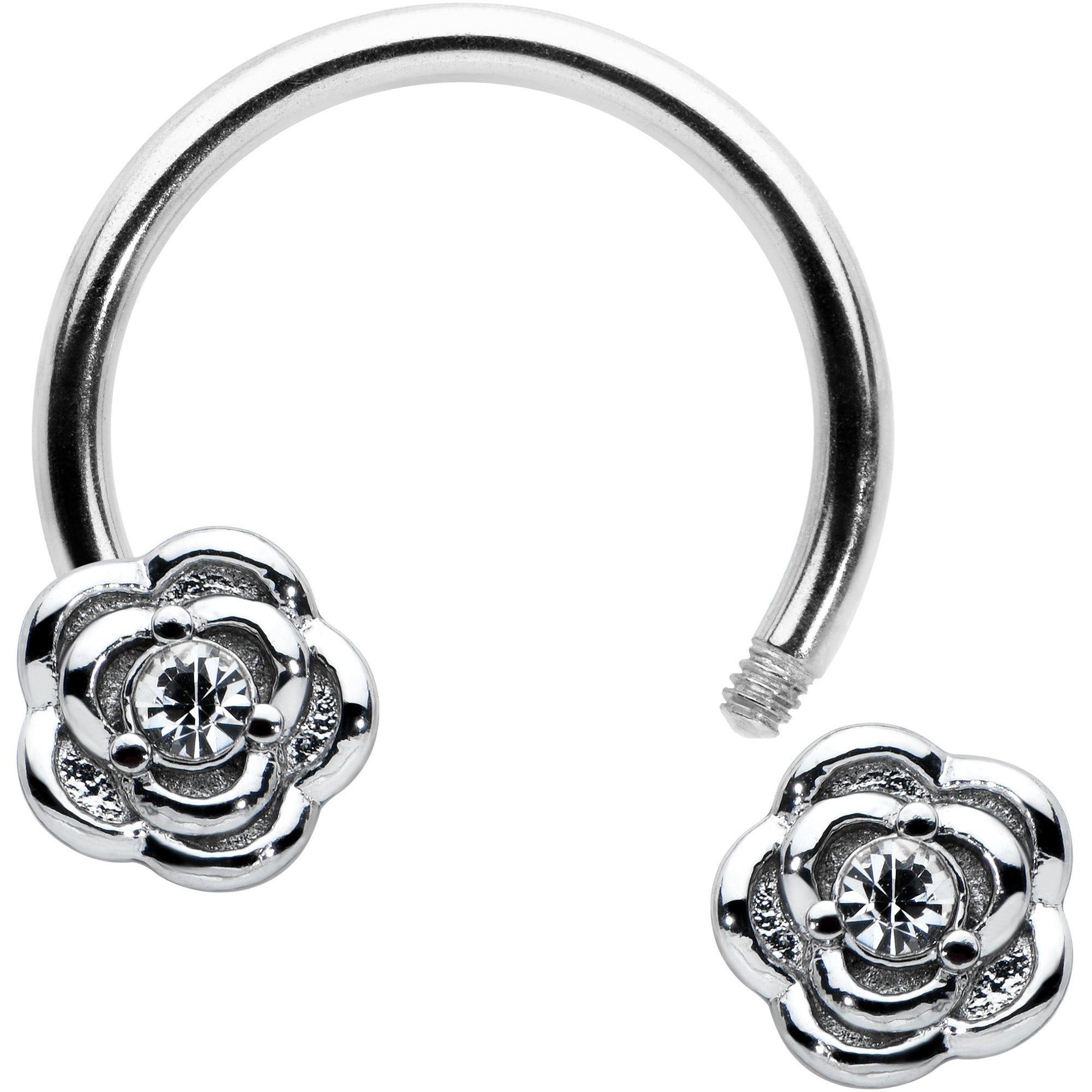 16G 3/8 Textured Blooming Flowers Horseshoe Circular Barbell