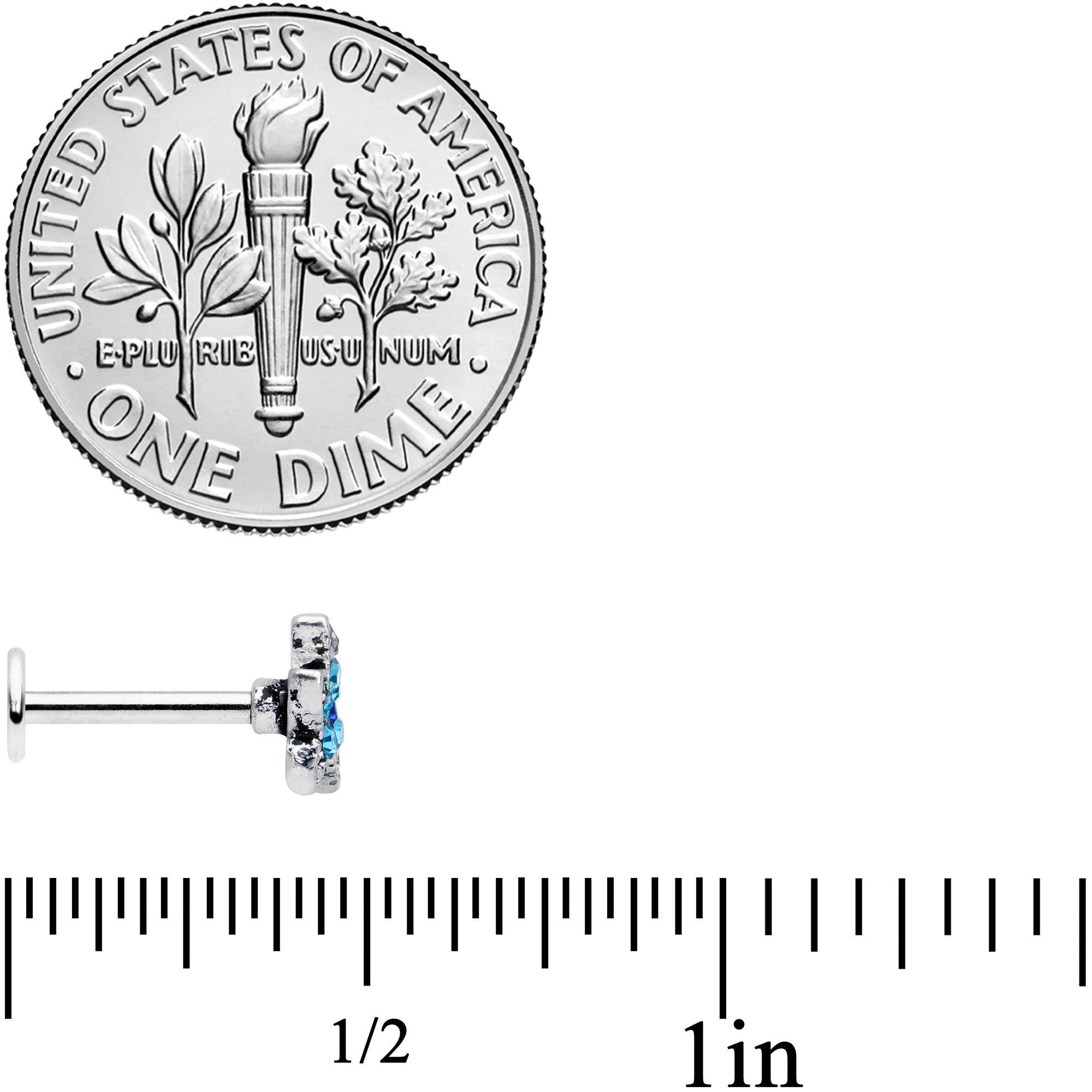 Whether you're under the sea or landlocked, you can be a seaside star with this 16 gauge lip ring! This cartilage jewelry is made with an 8mm durable 316L surgical grade stainless steel straight barbell with a flat disc end and features a starfish charm with aqua gems. It's further embellished with a dark blue gem at its center and clear gems. You can wear this cartilage earring in multiple piercings including your lip, monroe, tragus, helix and some conch piercings. Your cartilage piercing is sure to be a star at sea, on land, and anywhere else you choose to wear this nifty, nautical cartilage ring!