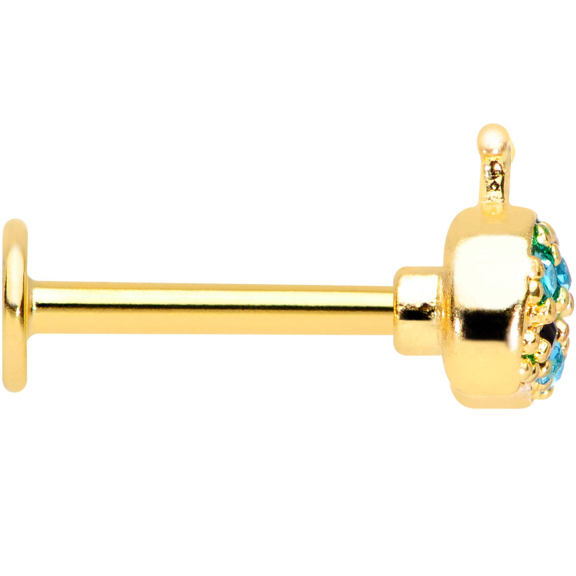 16G 5/16 Aqua Gem Gold Tone Water Whale Labret Monroe Tragus