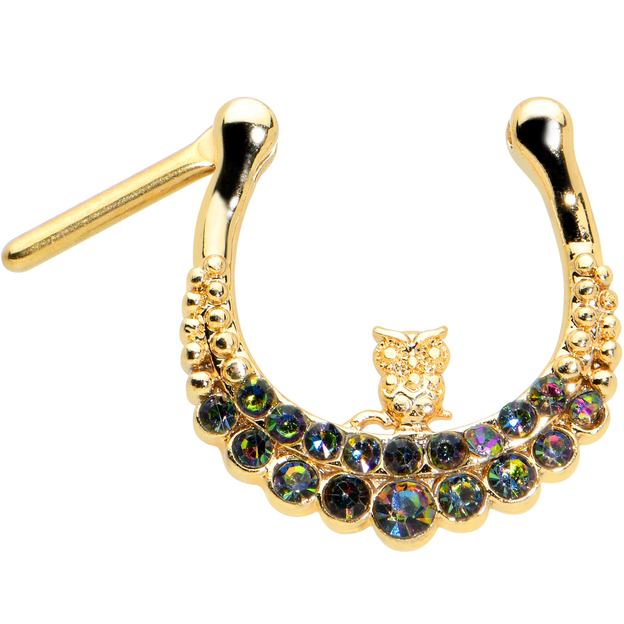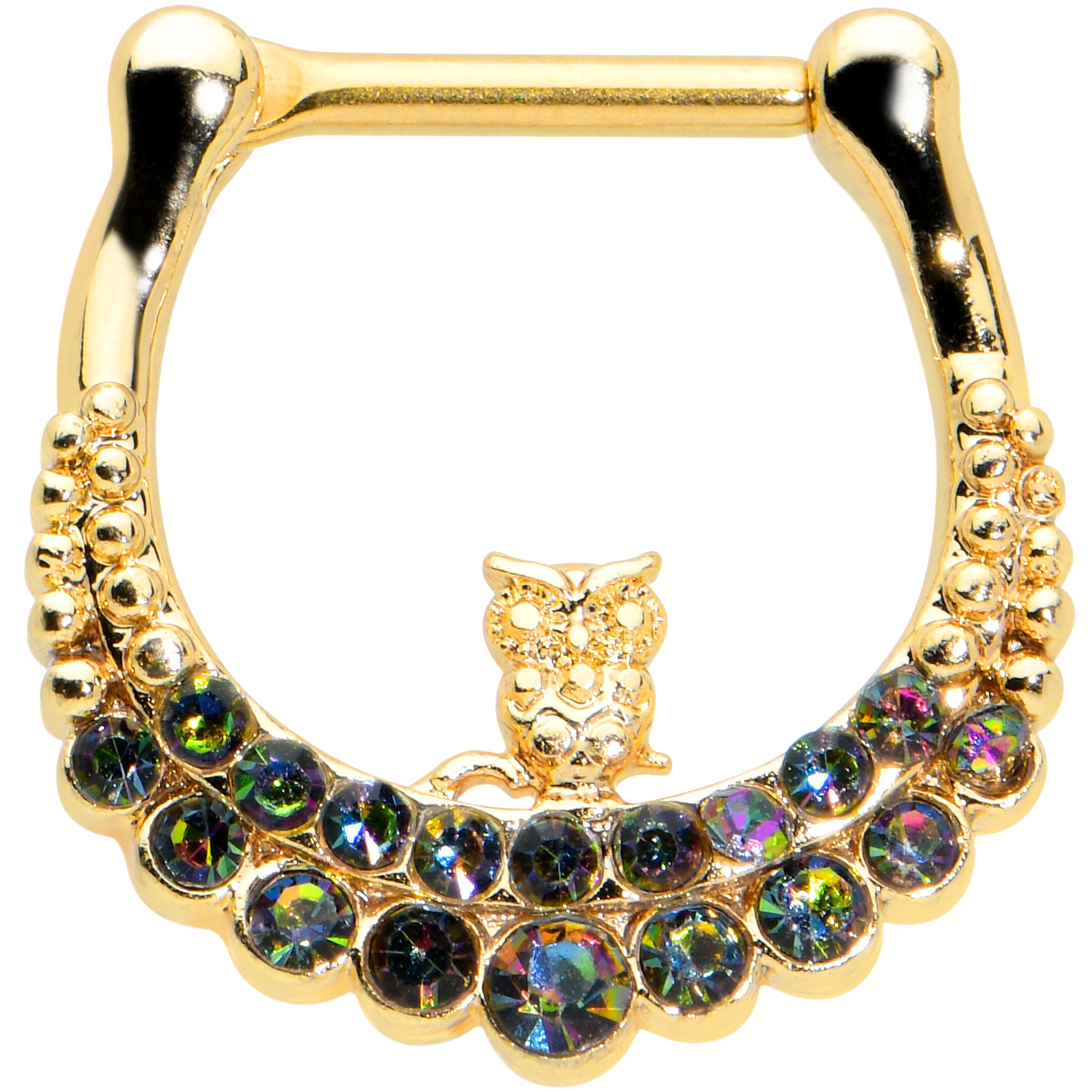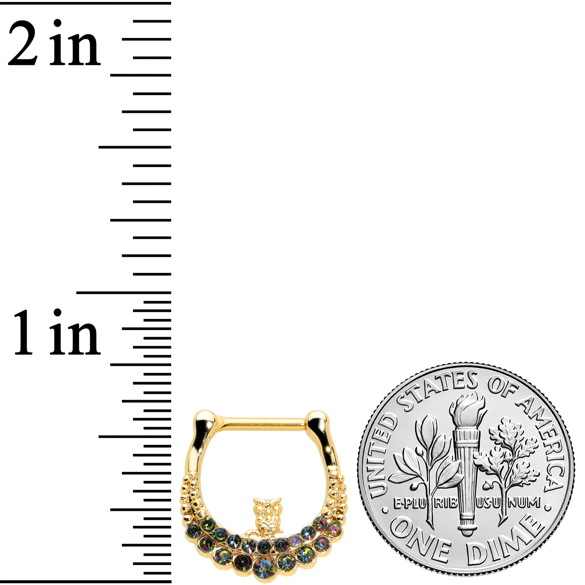 16 Gauge 5/16 Aurora Gem Gold Tone Owl Moon Cartilage Clicker