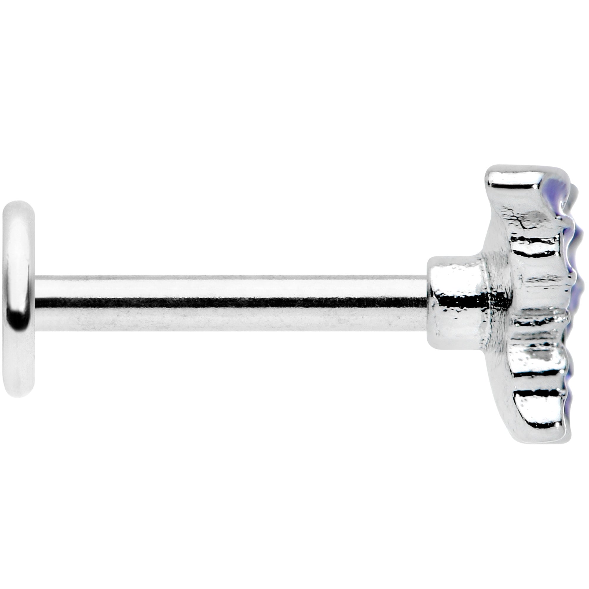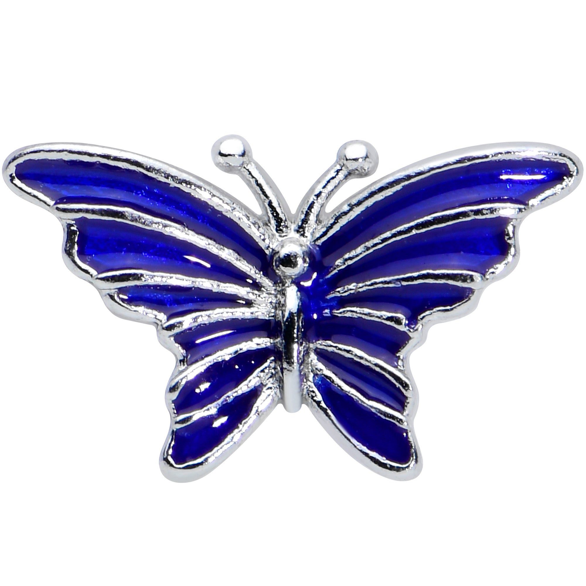 Butterflies are a symbol of change....like the butterfly on this 16 gauge lip ring! It's made with an 8mm durable 316L surgical grade stainless steel straight barbell with a flat disc end. It features a butterfly charm embellished with regal blue for an eye-catching splash of color. You can even boast this beauty in multiple piercings including lip, monroe, tragus, helix, and some conch piercings. Change your cartilage piercing into a thing of beauty with this beautiful blue butterfly cartilage jewelry!