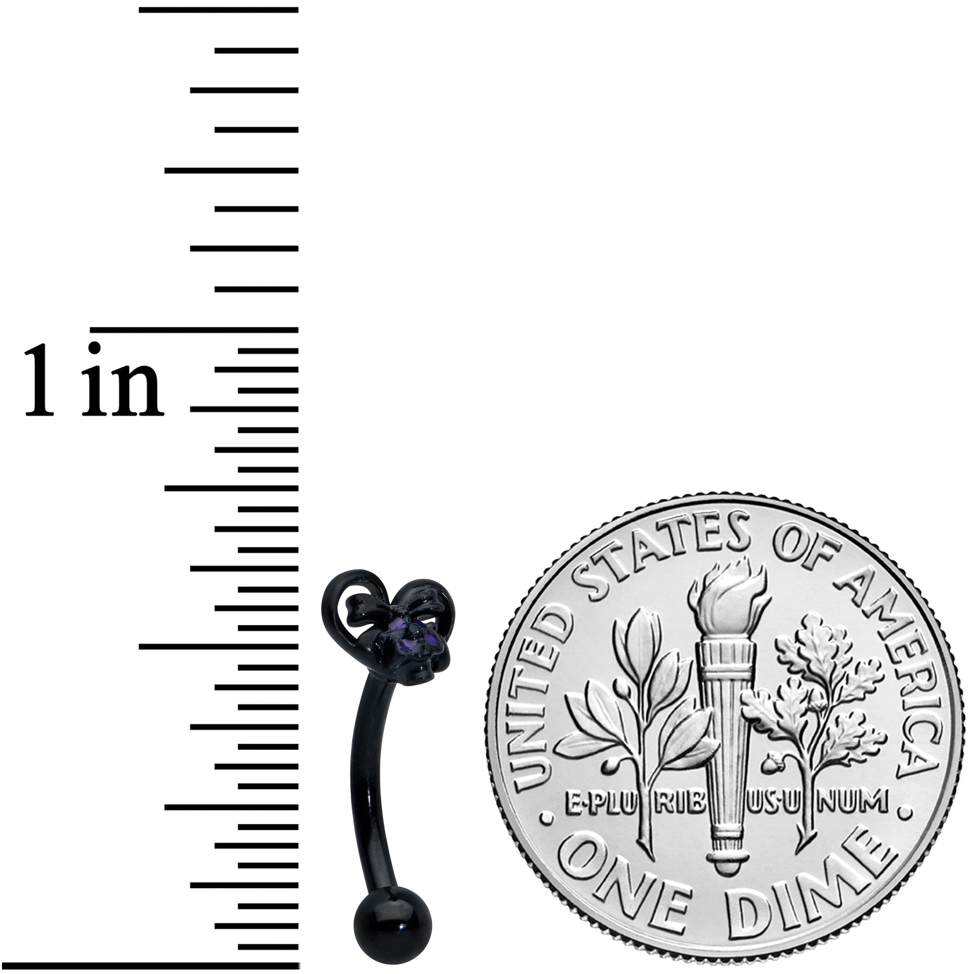 16G 5/16 Black Heart Purple Skull Bow Curved Eyebrow Ring