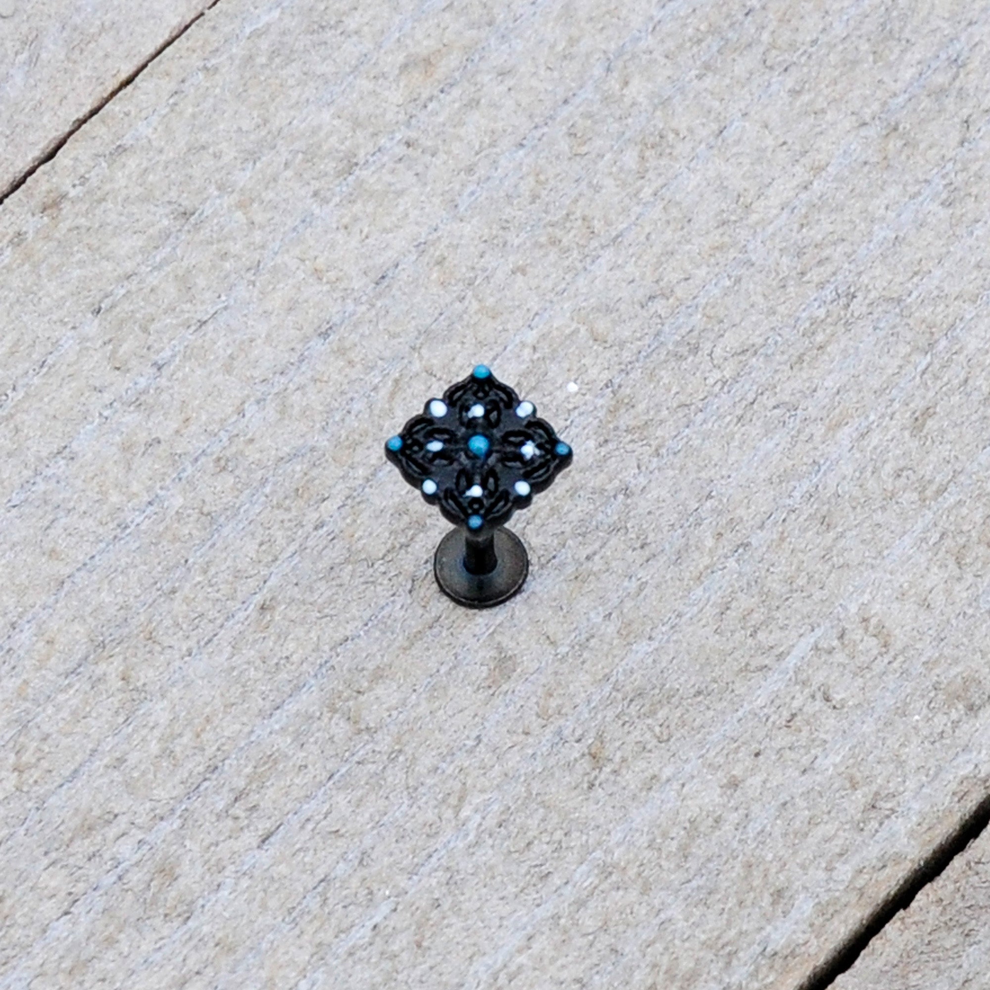 16 Gauge 5/16 Black Lacy Rhombus Blue Labret Monroe Tragus