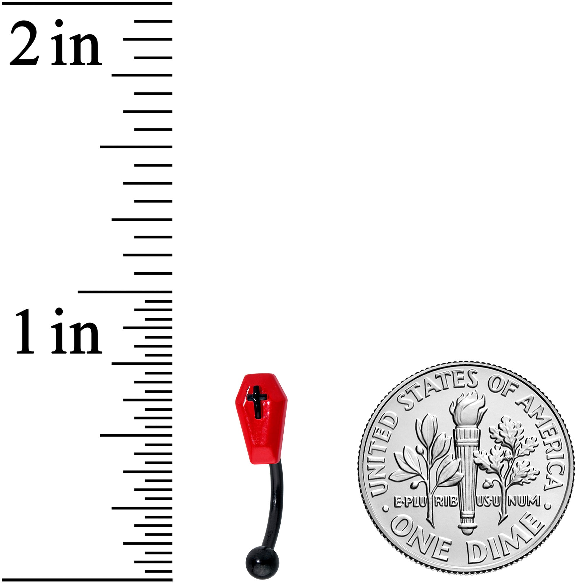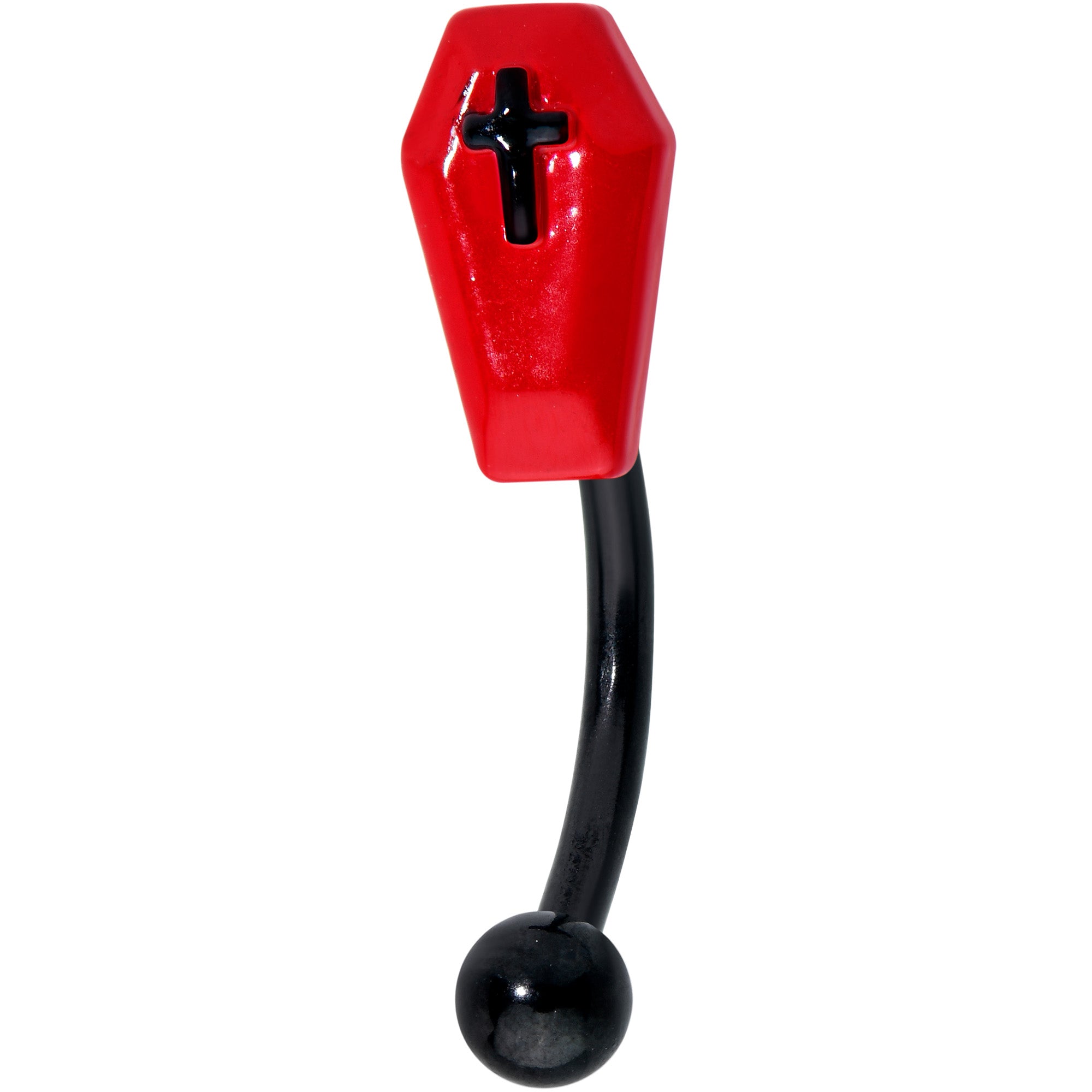 16G 5/16 Black Red Coffin Halloween Curved Eyebrow Ring
