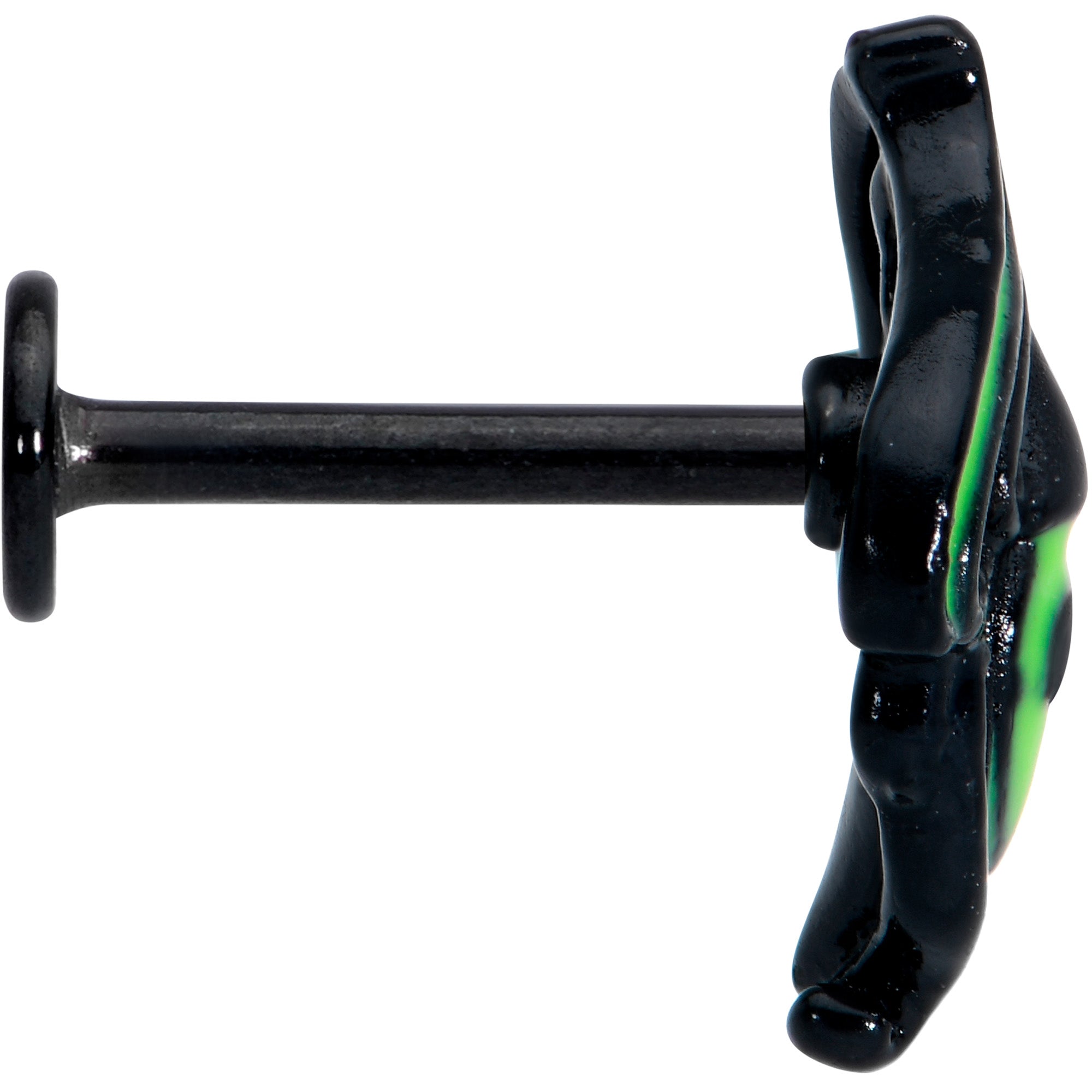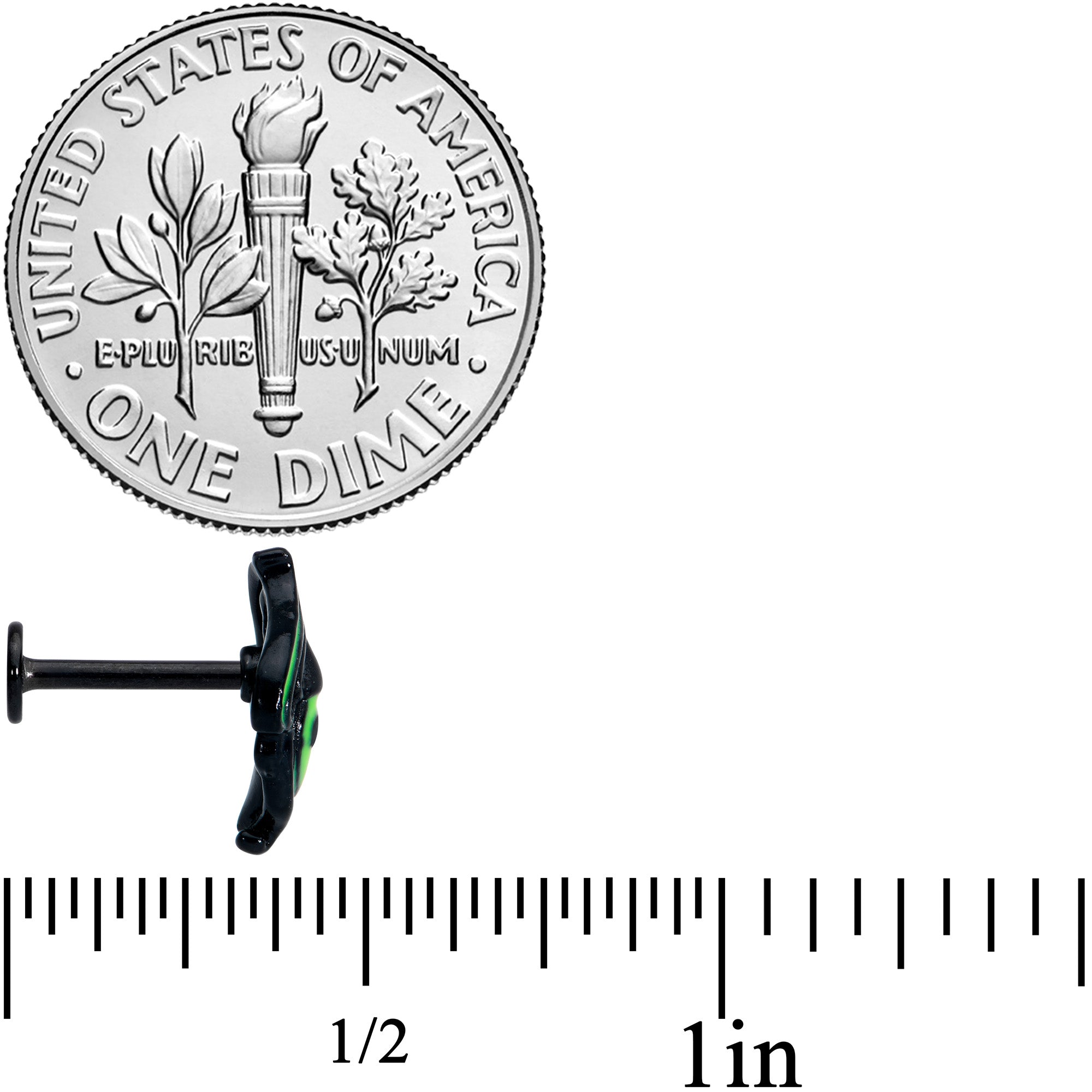 This 16 gauge lip ring is so striking you can hardly take your eyes off of it! It's made with an 8mm black PVD over 316L surgical grade stainless steel straight barbell with a flat disc end. It features a peacock feather charm, inlaid in an eerie bright green. It's even embellished with tendrils along the side, giving it the appearance of a real feather! You can even rock it in multiple piercings including lip, monroe, tragus, helix, and some conch piercings. You'll definitely want to strut your stuff when you're nesting this avian cartilage jewelry in your cartilage piercing!