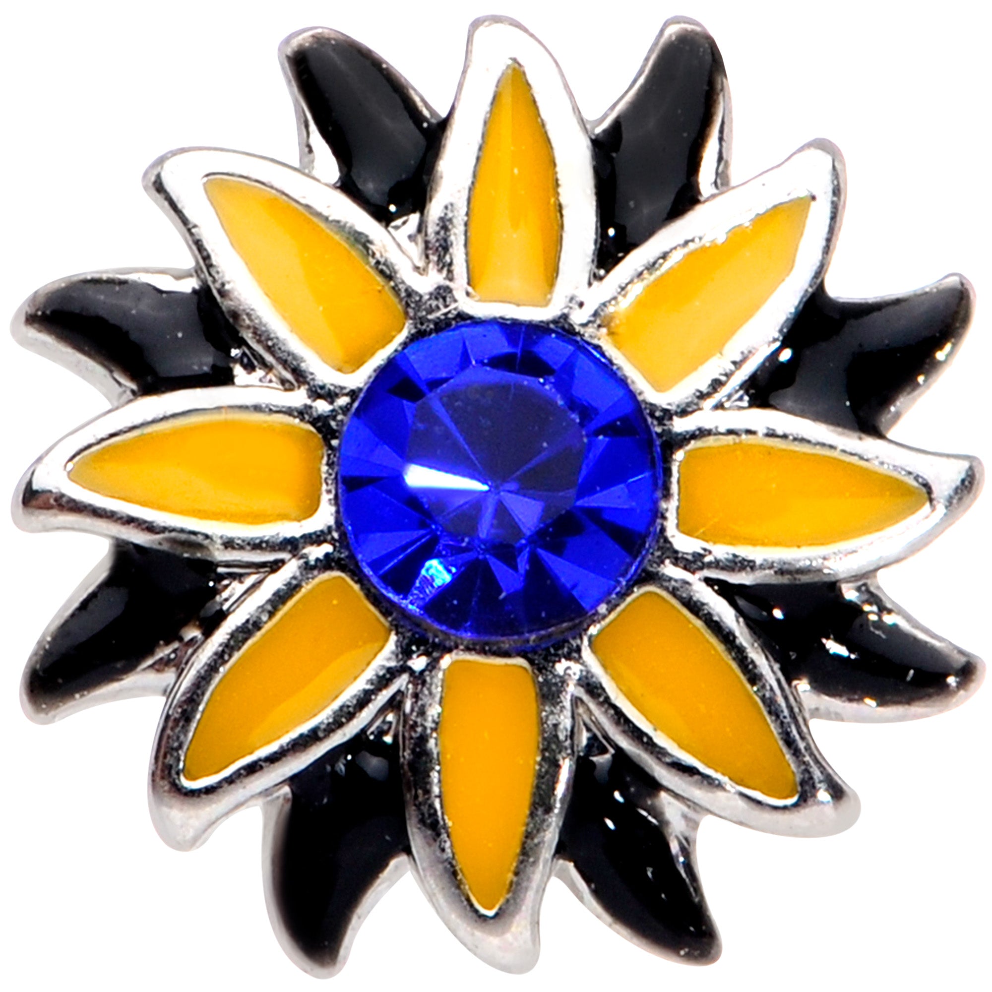 16 Gauge 5/16 Blue Faux Druzy Yellow Sunflower Labret Monroe Tragus