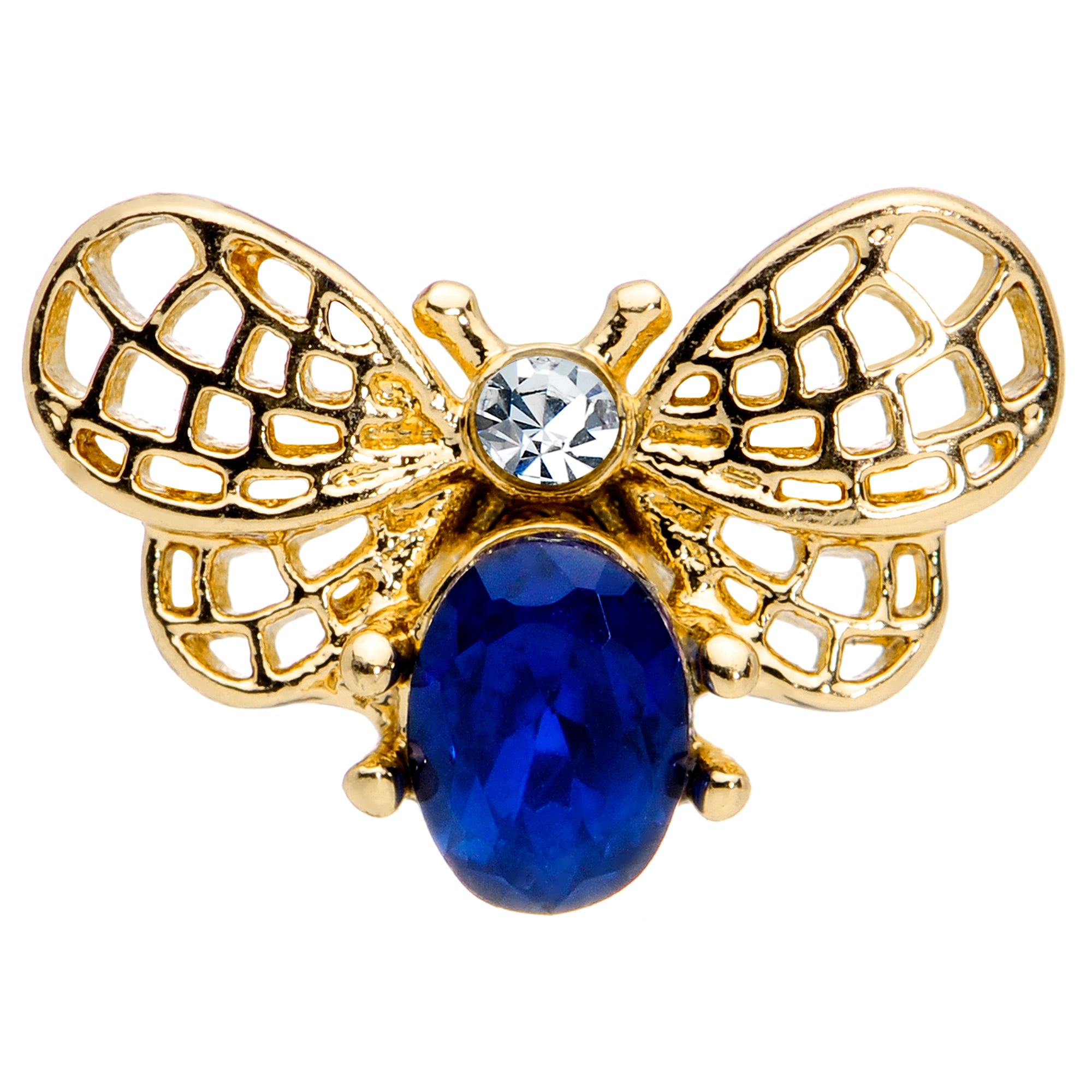 16G 5/16 Blue Gem Gold Tone Beautiful Bee Labret Monroe Tragus