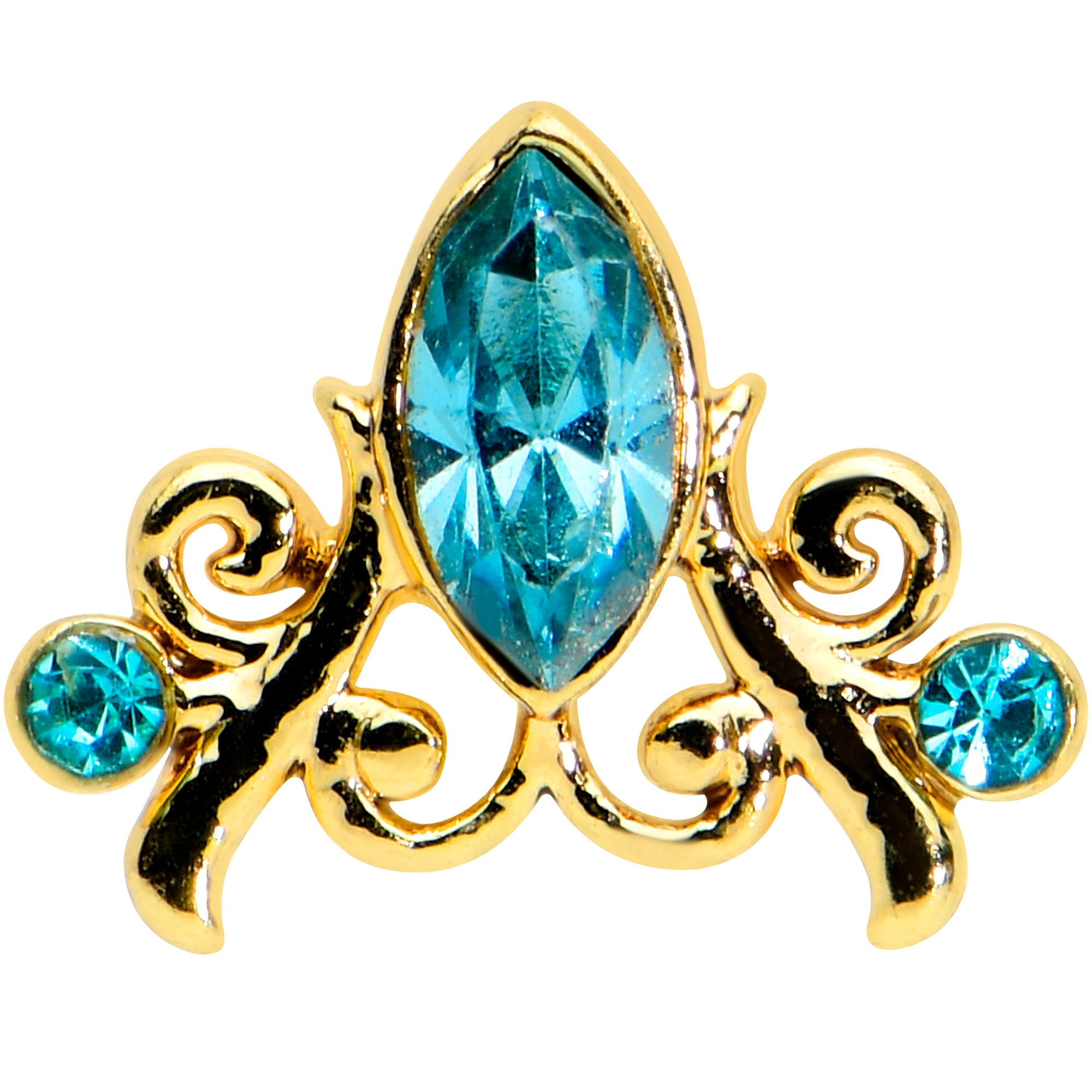 16 Gauge 5/16 Blue Gem Gold Tone Elegant Diadem Labret Monroe Tragus