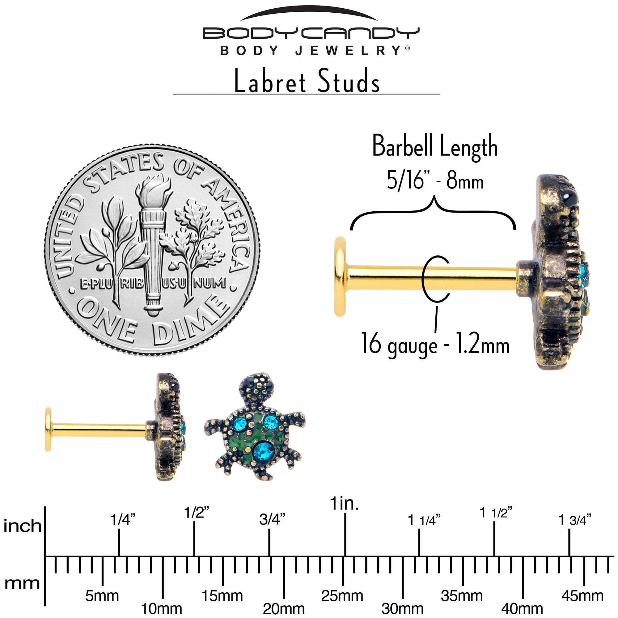 16G 5/16 Blue Gem Gold Tone Sweet Sea Turtle Labret Monroe Tragus