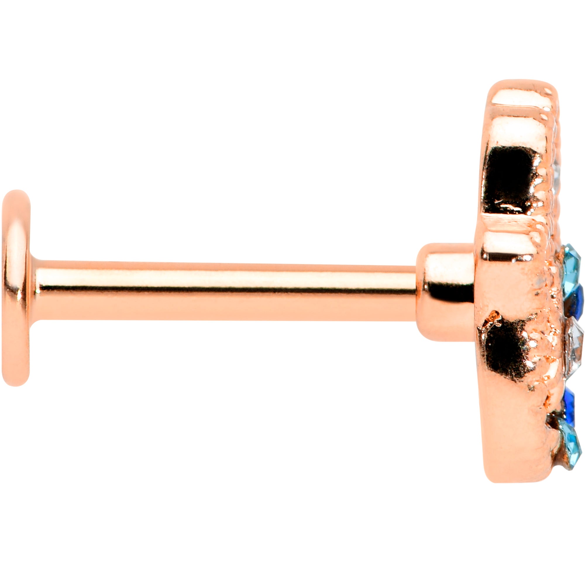 16 Gauge 5/16 Blue Gem Rose Gold Hue Texture Hamsa Labret Monroe Tragus