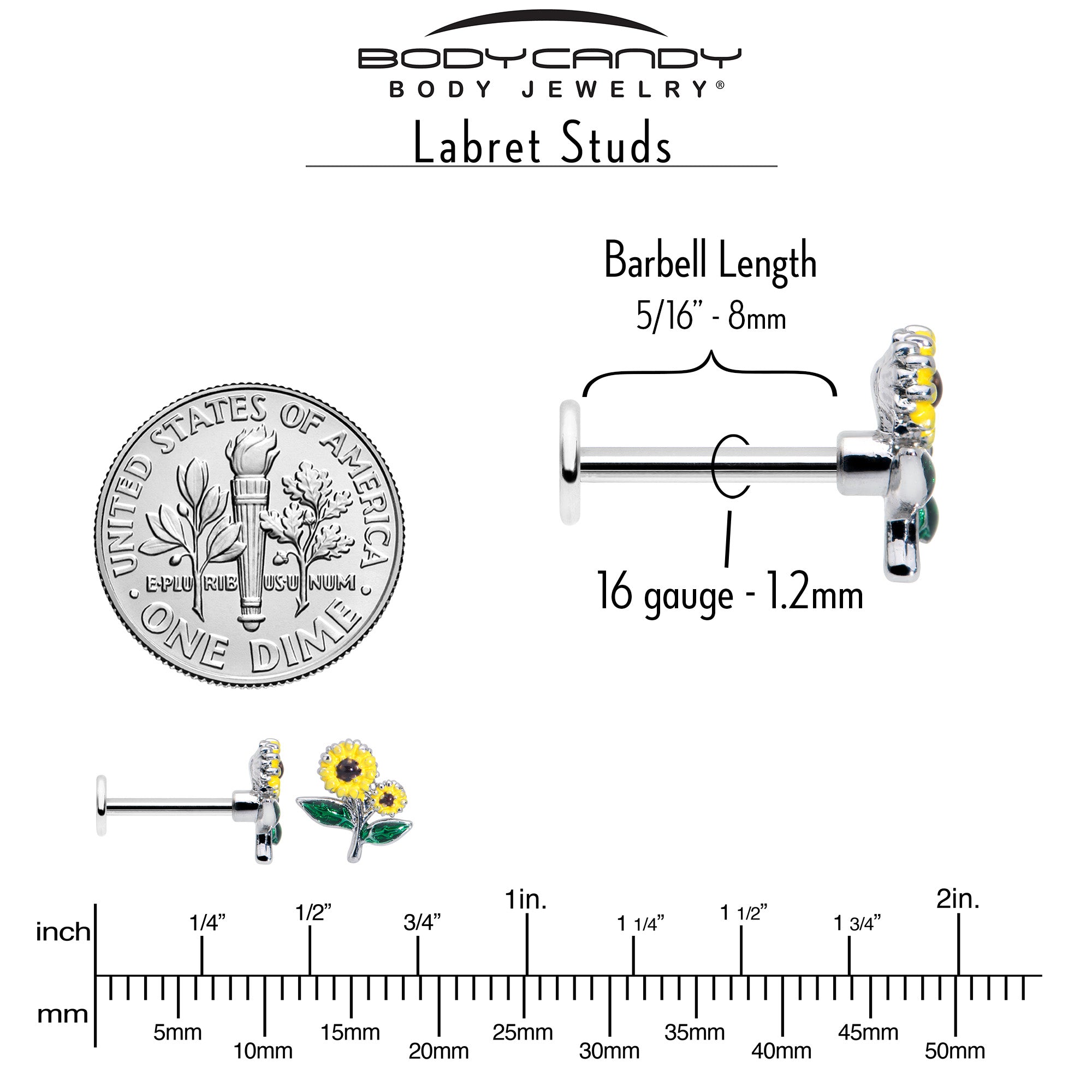 16G 5/16 Cheery Inlay Sunflowers Labret Monroe Tragus