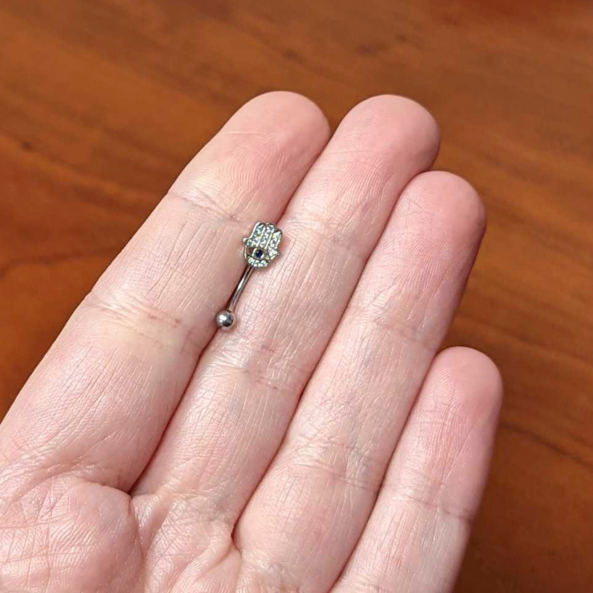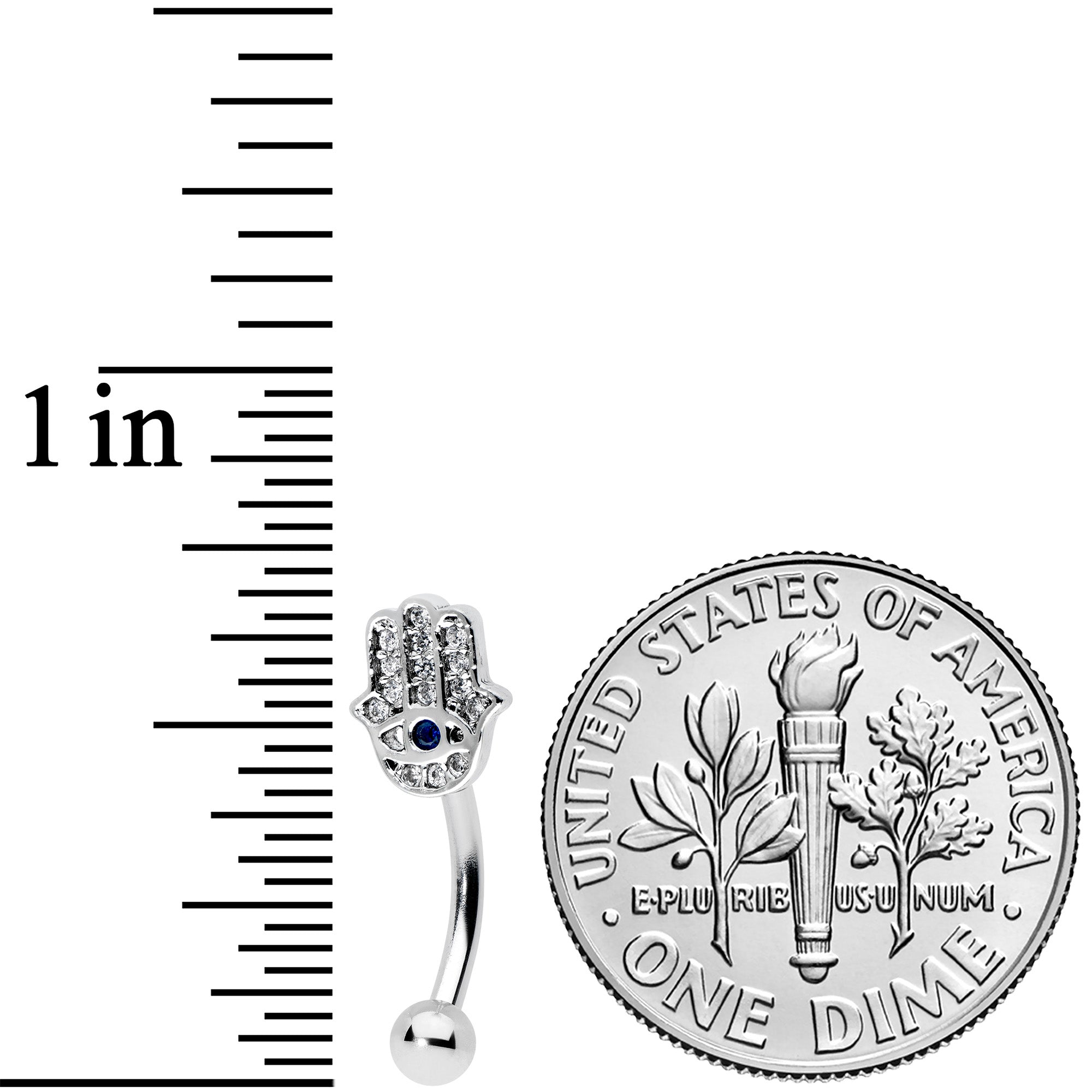 16 Gauge 5/16 Clear Blue Gem Eye Hamsa Hand Curved Eyebrow Ring